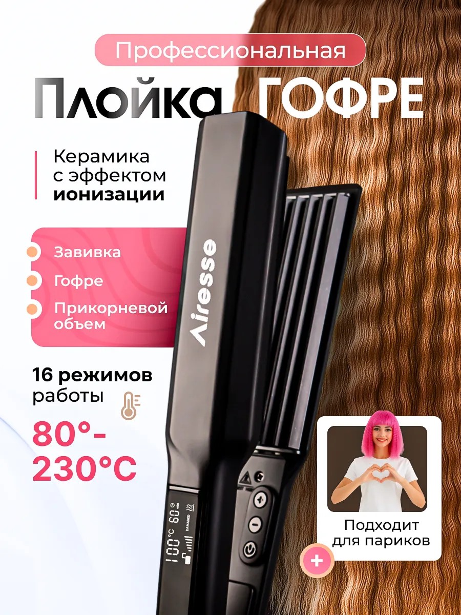 Профессиональный гофре стайлер для волос Airesse Pro — универсальный инструмент для создания разнообразных укладок и эффектных причесок. Эта плойка волна и гофре для волос идеально подходит для профессионалов и домашних пользователей, обеспечивая безупречный результат благодаря современным технологиям и широкому функционалу.