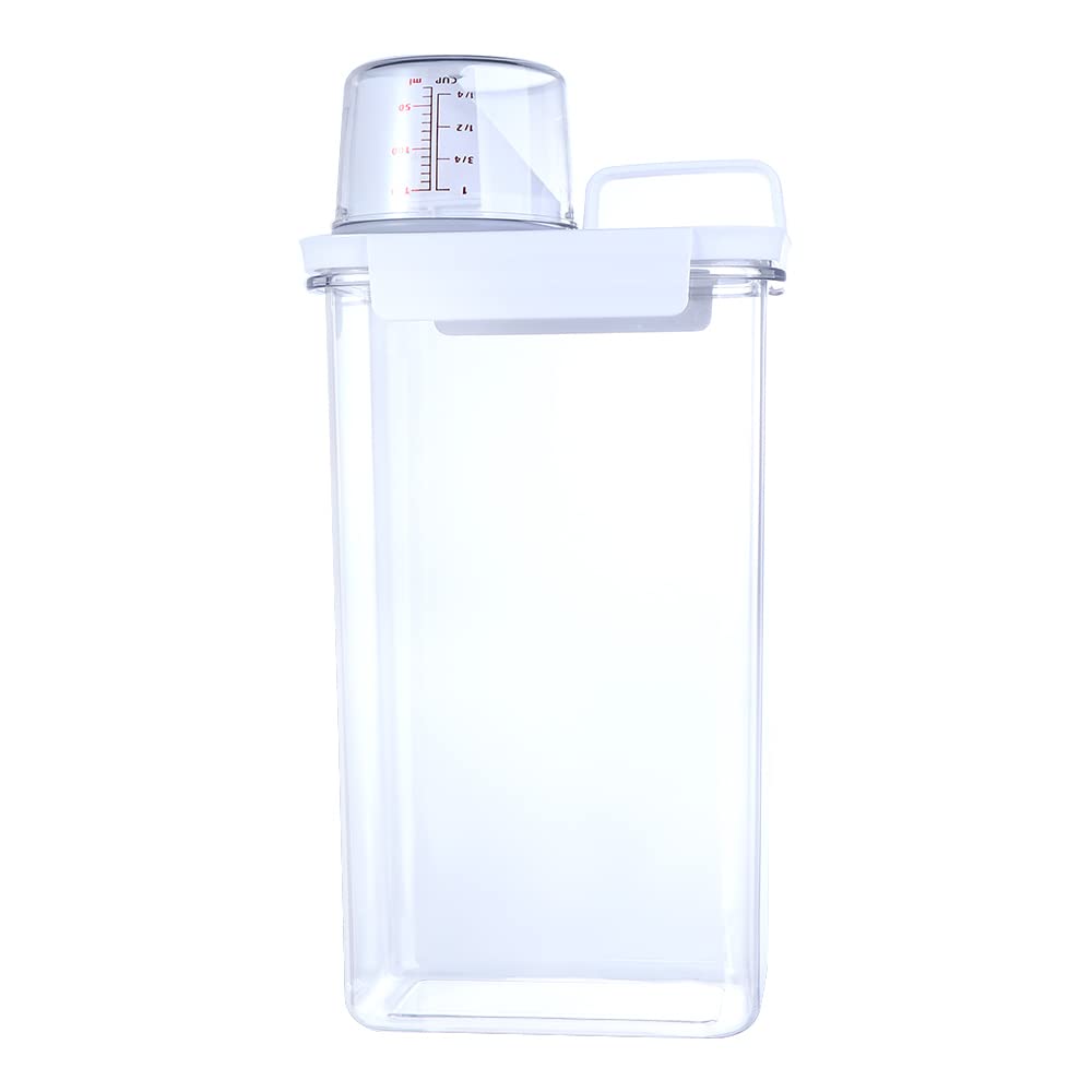 Package include: 1pc laundry detergent dispenser. Use for: rice grains laundry powder detergent storage. Double sealing rings for safe and fresh food storage. Portable handle, mounting measuring cup, transparent box, the inside of the box is clear at a glance. A great sealed container can keep your food safe from moisture and any pest, enjoy the fresh food. Elegant shape, bump curve, easy to use.The bottle scale marking how much is clear at a glance. Easy Pouring Spout of the dispenser, handy accessories including a measuring cup and the pourable spout making every pouring neat and clean, cup make your food measuring more easier. Measuring cup can screw on over the pour spout.