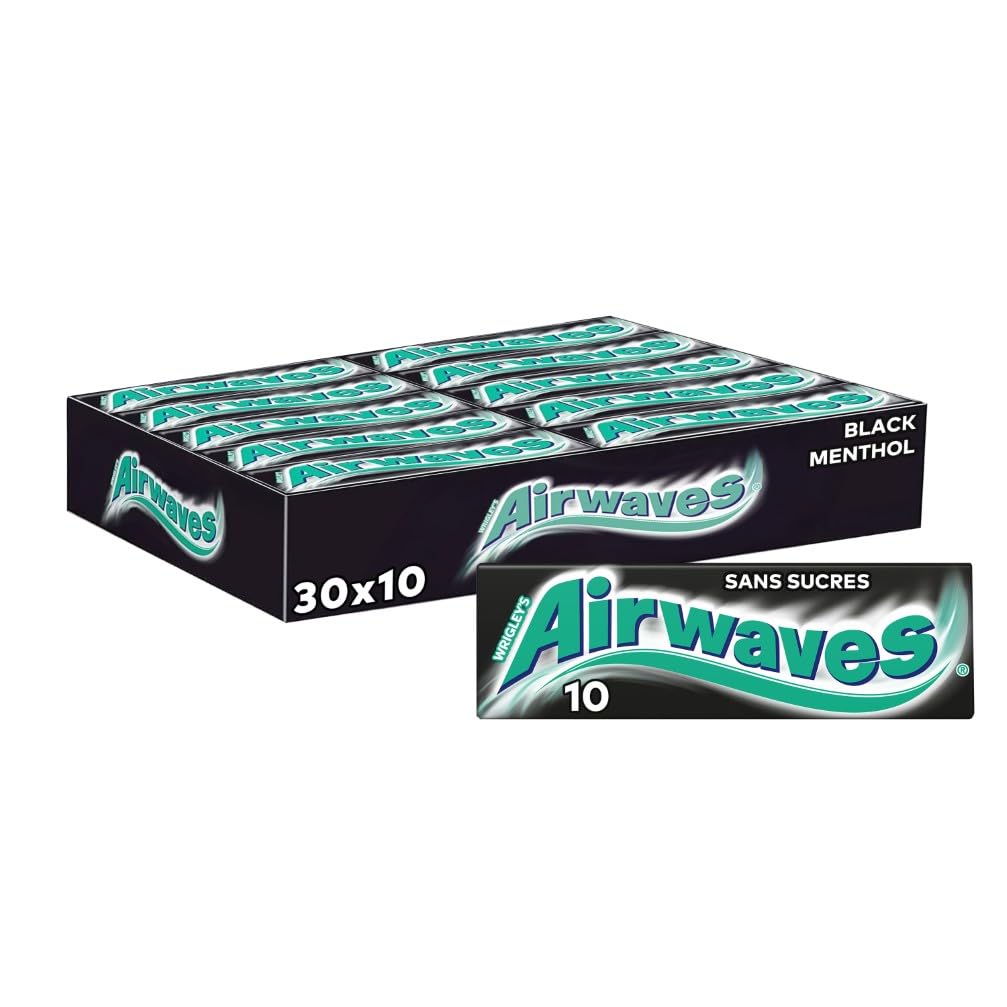 : Pack of 30 cases of 10 Airwaves sugar-free chewing gum pieces in BLACK MENTHOL flavor. This chewing gum combines the power of menthol with the flavor of eucalyptus and anise for moments of intense freshness. It will help you recharge your batteries and take a breath of fresh air to face the challenges of everyday life. Ingredients: Sweeteners (Sorbitol, Isomalt, Maltitol Syrup, Aspartame, Acesulfame K, Mannitol), Gum Base, Glazing Agent (Calcium Carbonate), Flavorings, Thickener (Gum Arabic), Emulsifier (SOY Lecithin), Humectant (Glycerol), Glazing Agent (Carnauba Wax), Antioxidant (BHA), Color (E141). EXCESSIVE CONSUMPTION MAY HAVE LAXATIVE EFFECTS. CONTAINS A SOURCE OF PHENYLALANINE. P.when('A').execute(function(A) { A.on('a:expander:toggle_description:toggle:collapse', function(data) { window.scroll(0, data.expander. expander[0].offsetTop-100) }) }) Directions Ready to chew! Safety Warning Excessive consumption may have laxative effects. See moreLarge format - 1 carton containing 30 packs of 10 Airwaves Black Menthol dragees, for a total of 300 dragees. Sugar-free chewing gum. Ideal for sharing on a second date, with friends during study sessions, or with a colleague to refresh your mind and palate. In a hurry? Take a moment to stop. and breathe. Choose Airwaves chewing gum when your day threatens to overwhelm you. Refreshing sugar-free chewing gum with anise and menthol flavor. Thanks to its intense mint taste, it refreshes both your mouth and your mind.Description du produit Lot de 30 étuis de 10 dragées de Chewing-Gum sans sucres Airwaves au goût BLACK MENTHOL, un chewing-gum qui associe la puissance du menthol avec la saveur de l'eucalyptus et de l'anis, pour des moments de fraîcheur intense et qui vous aidera à recharger les batteries et reprendre une bouffée d'air frais afin de relever les défis du quotidien. Ingrédients Edulcorants (Sorbitol, Isomalt, Sirop de Maltitol, Aspartame, Acesulfame-K, Mannitol), Gomme base, Agent d'enrobage (carbonate de calcium), Aromes, Epaissant (gomme arabique), Emulsifiant (lecithine de SOJA), Humectant (glycerol), Agent d'enrobage (cire de carnauba), Antioxydant (BHA), colorant (E141). UNE CONSOMMATION EXCESSIVE PEUT AVOIR DES EFFETS LAXATIFS. CONTIENT UNE SOURCE DE PHENYLALANINE. P.when('A').execute(function(A) { A.on('a:expander:toggle_description:toggle:collapse', function(data) { window.scroll(0, data.expander. expander[0].offsetTop-100) }) }) Mode d'emploi Prêt à être mâché! Avertissement De Sûreté Une consommation excessive peut avoir des effets laxatifs Voir plusGrand format - 1 Carton contenant 30 paquets de 10 dragées Airwaves Black Menthol soit 300 dragées au total. Chewing-gum sans sucres. Idéal à partager lors d'un second date, avec vos copains lors des révisions ou avec votre collègue pour vous rafraîchir l'esprit et la bouche. Pressé ? Prenez le temps de vous arrêter. et de respirer. Optez pour le chewing-gum Airwaves lorsque votre journée risque de vous submerger. Chewing-gum sans sucres rafraîchissant, au goût d'anis et de menthol. Grâce à son goût de menthe intense, il rafraîchit à la fois votre bouche et votre esprit.AIRWAVES - Chewing-gum Black Menthol sans sucres - Grand format contenant 30 paquets de 10 dragées - 420g