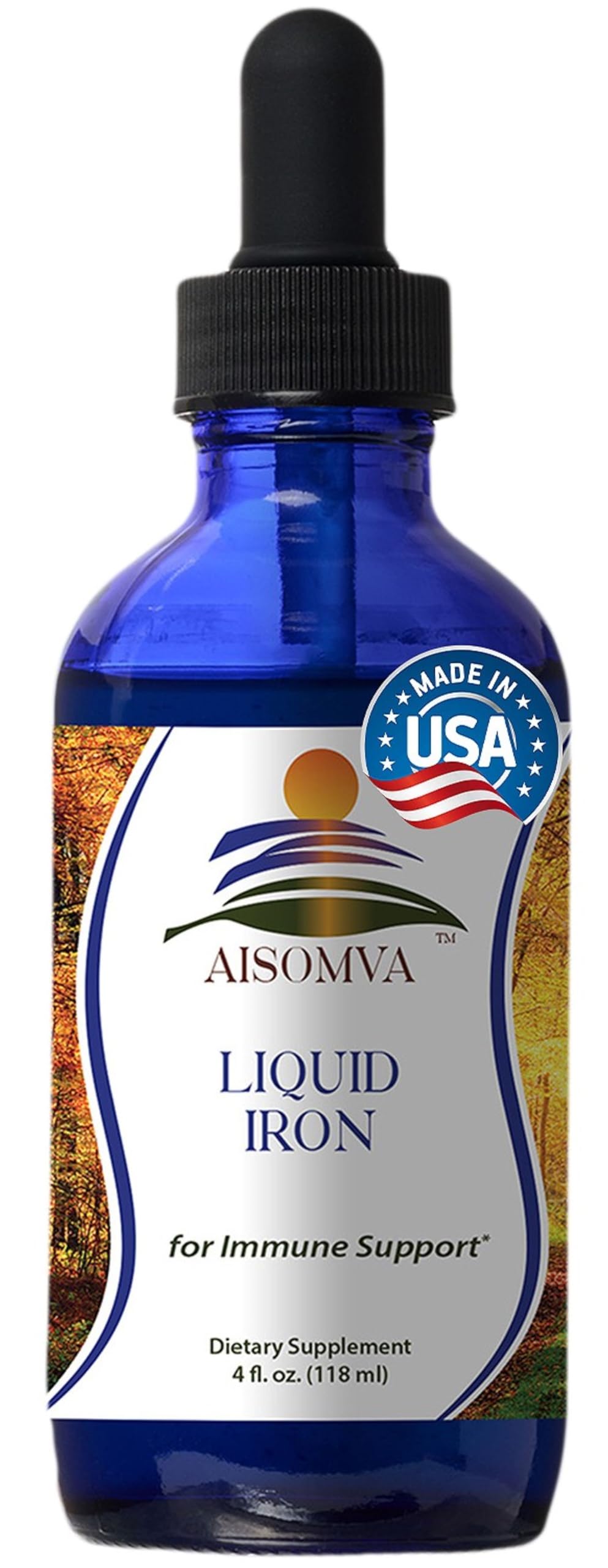 AISOMVA Liquid Iron with Dropper - High Absorption Iron Supplement for Energy, Immune Support Vitality Fast-Acting, Bioavailable Formula (4 Fl Oz) DAILY SUPPORT FOR ENERGY VITALITY: Iron is an essential mineral that plays a key role in daily well-being. AISOMVA's Liquid Iron helps support energy levels and overall vitality, making it an easy addition to your daily routine. 4 fl oz (42 servings). FAST-ABSORBING, BIOAVAILABLE FORMULA: Unlike traditional iron supplements, our liquid formula is designed for quick absorption, allowing your body to utilize iron efficiently, without the common digestive discomfort of pills or tablets. LAB TESTED VERIFIED: Produced in the U.S. at an FDA-inspected, cGMP-certified facility following the most rigorous manufacturing quality control standards, every batch is third-party tested by independent labs for efficacy and contaminants. It is organic, vegan, GMO-free, allergen-free, and gluten-free, containing no additives, preservatives, colorants, or stabilizers. INGREDIENTS Distilled Water, Ferrous Gluconate, Citric Acid, Potassium Benzoate for activated immune defense. BACKED BY 50 YEARS OF EXPERTISE: AISOMVA is committed to providing premium-quality supplements with transparency and effectiveness at the core. With decades of experience, we deliver science-backed nutrition you can trust.BACKED BY 50 YEARS OF EXPERTISE: AISOMVA is committed to providing premium-quality supplements with transparency and effectiveness at the core. With decades of experience, we deliver science-backed nutrition you can trust. INGREDIENTS Distilled Water, Ferrous Gluconate, Citric Acid, Potassium Benzoate for activated immune defense. LAB TESTED VERIFIED: Produced in the U.S. at an FDA-inspected, cGMP-certified facility following the most rigorous manufacturing quality control standards, every batch is third-party tested by independent labs for efficacy and contaminants. It is organic, vegan, GMO-free, allergen-free, and gluten-free, containing no additives, preservatives, colorants, or stabilizers. FAST-ABSORBING, BIOAVAILABLE FORMULA: Unlike traditional iron supplements, our liquid formula is designed for quick absorption, allowing your body to utilize iron efficiently, without the common digestive discomfort of pills or tablets. DAILY SUPPORT FOR ENERGY VITALITY: Iron is an essential mineral that plays a key role in daily well-being. AISOMVA's Liquid Iron helps support energy levels and overall vitality, making it an easy addition to your daily routine. 4 fl oz (42 servings).