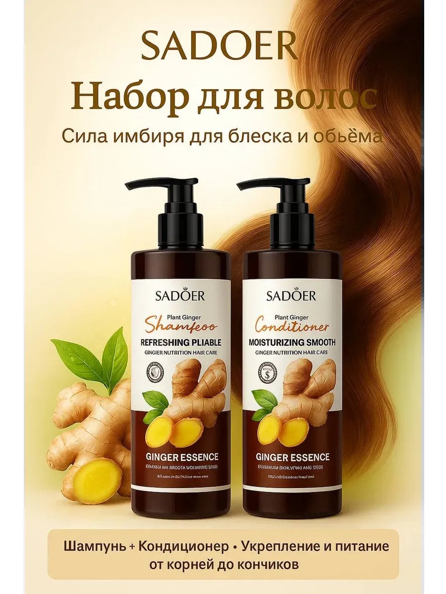 Набор SADOER Ginger Shampoo и Conditioner создан для тех, кто ценит природную силу и премиальный уход.
