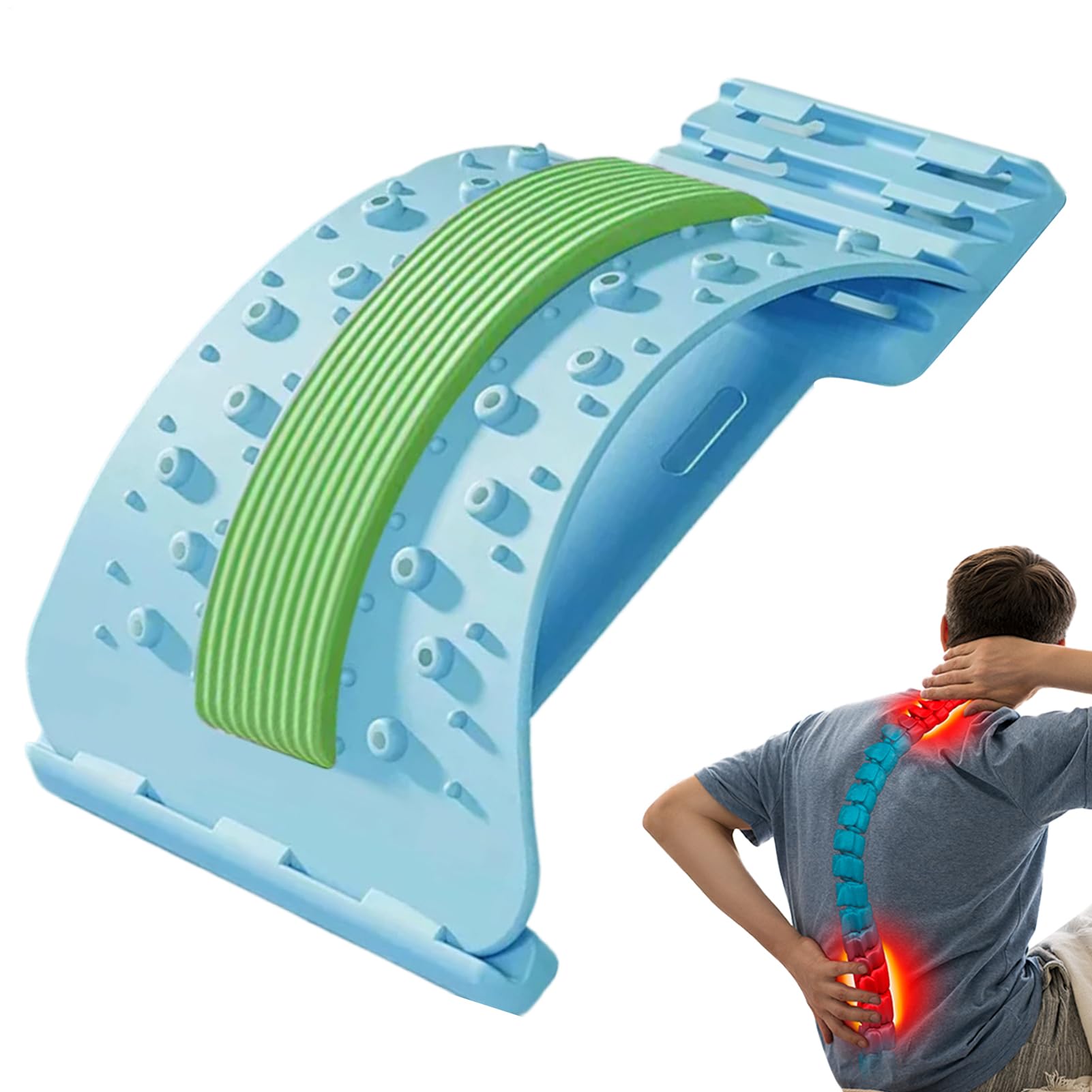 As a massager, it helps reduce tension and discomfort while improving flexibility and overall well-being. Whether used for daily use or post-workout recovery, the back stretcher provides effective relief and helps maintain healthy posture. Its adaptable design makes it suitable for different routines, ensuring comfort and functionality. Size: 37.5 x 17.5 cm 14.76 x 6.89 inches Material: ABS PP foam Load capacity: 150 kg Note: Due to different lighting and screen settings, the item color may be slightly different from the picture. Due to different manual measurements, please allow 1-2cm difference in size. Product content: lower back stretcher 1 pieceDurable Construction: Crafted from long lasting materials for excellent stability, suitable for weights up to 150kg, consistent use in physical treatment or relaxation anywhere. Muscle Fatigue Relief: With innovative design, this lower back stretcher combines magnetic massage and targeted pressure relief to reduce muscle fatigue, ideal for relaxation after a long day at work or training. Compact and Travel Friendly: This back stretcher is lightweight and compact, making it easy to carry for everyday use at home, work or on the go. The portable design ensures consistent spine care wherever you are, without extra effort. Lumbar Comfort: Designed to relieve nerve pressure, the back stretcher supports disc retraction and provides lumbar traction so users experience less lower back pain when relaxing on the couch or recovering after an intense workout at the gym. Comfortable Support: The foam cushion and comfortable padding provide waist support, promoting relaxation after exercise or while reading in a comfortable chair.Rug Strekker - Lumbale Strekker Ergonomische Corrector Antislip 3 Niveaus Verstelbaar Voor Spierontspanning Lumbale Regio Lichaamsoefening Blauw Als massager helpt het spanning en ongemak te verminderen terwijl het flexibiliteit en algeheel welzijn verbetert. Of het nu wordt gebruikt voor dagelijks of herstel na een workout, biedt de ruggenstrekker effectieve verlichting en helpt het een gezonde houding te behouden. Het aanpasbare ontwerp maakt het geschikt voor verschillende routines, waarbij comfort en functionaliteit worden gegarandeerd. Grootte: 37,5 x 17,5 cm 14,76 x 6,89 inch Materiaal: ABS PP schuim Laadvermogen: 150 kg Opmerking: Vanwege verschillende verlichting en scherminstellingen kan de itemkleur enigszins verschillen van de afbeelding. Vanwege verschillende handmatige metingen, houd een verschil in 1-2 cm in grootte. Productinhoud: onderrug brancard 1 stukDuurzame constructie: Vervaardigd uit langdurige materialen voor uitstekende stabiliteit, geschikt voor gewichten tot 150 kg, consistent gebruik bij fysieke behandeling of ontspanning overal. Spiervermoeidheidsverlichting: Met innovatief design combineert deze onderrugstrekker magnetische massage en gerichte drukvermindering om spiervermoeidheid te verminderen, ideaal voor ontspanning na lange werkdag of training. Compact en Reisvriendelijk: Deze rugstrekker is lichtgewicht en compact, waardoor hij eenvoudig mee te nemen is voor dagelijks gebruik thuis, op het werk of onderweg. De draagbare ontwerp zorgt voor consistente wervelkolomverzorging waar u ook bent, zonder extra moeite. Lumbaal comfort: Ontworpen om zenuwdruk te verlichten, ondersteunt de rugstrekker discusretractie en biedt lumbale tractie, zodat gebruikers minder last hebben van lage rugpijn bij het ontspannen op de bank of herstellen na een intensieve training in de sportschool. Comfortabele ondersteuning: Het schuimkussen en comfortabele vulling zorgen voor een tailleondersteuning, bevorderen ontspanning na het sporten of tijdens het lezen in een comfortabele stoel.