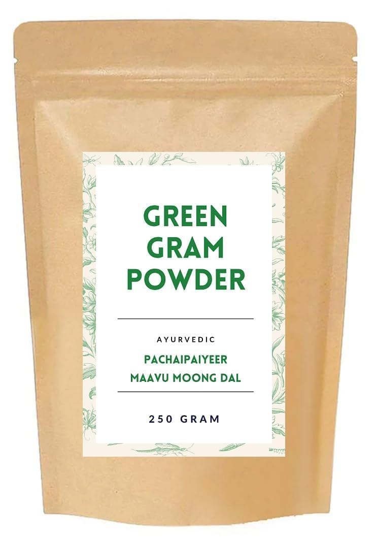 Cleanses, tones, nourishes, whitens and rejuvenates the skin. Removes facial hair, Sun tan. Ideal For face masks, skin care, exfoliation and brightening, hair pack. Moong Dal payatham maavu or Green gram flour Powder is 100 natural.