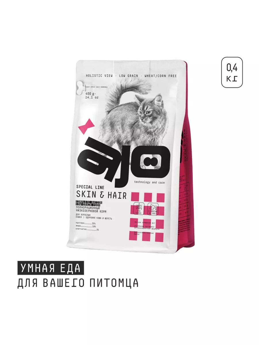 Для правильного питания кошек и поддержания красивого внешнего вида кожи и шерсти необходимо полезное и качественное питание. Поэтому сухой корм AJO (Айо) разработан с учетом всех этих особенностей, содержит все необходимые питательные вещества.