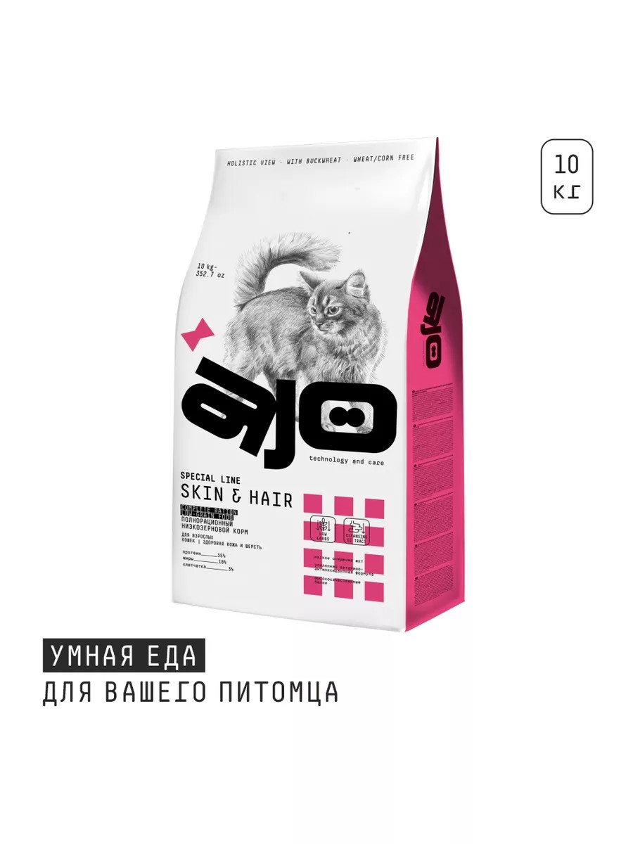 Для правильного питания кошек и поддержания красивого внешнего вида кожи и шерсти необходимо полезное и качественное питание. Поэтому сухой корм AJO (Айо) разработан с учетом всех этих особенностей, содержит все необходимые питательные вещества.
