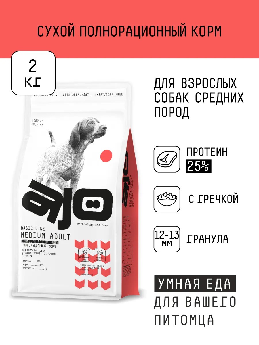 AJO Сухой корм для собак средних пород, 2кг