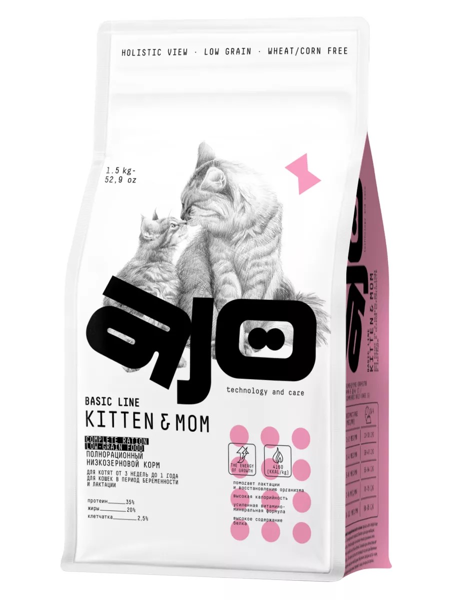 AJO Сухой корм для котят и беременных и кормящих кошек, 1.5кг