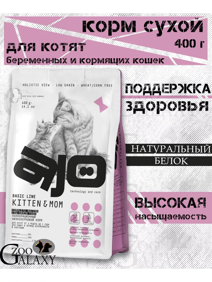 AJO Сухой корм для котят, беременных и кормящих кошек 400 г