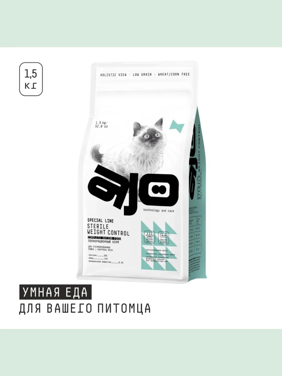 AJO Сухой корм для стерилизованных кошек контроль веса 1,5 кг