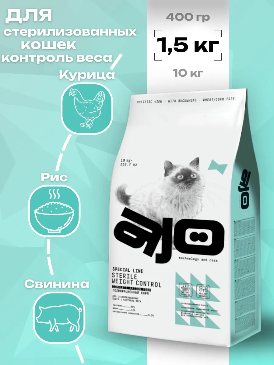 | Package contents | 1 package of AJO Cat holistic Sterile Weight Control dry food for sterilized cats 1.5 kg |