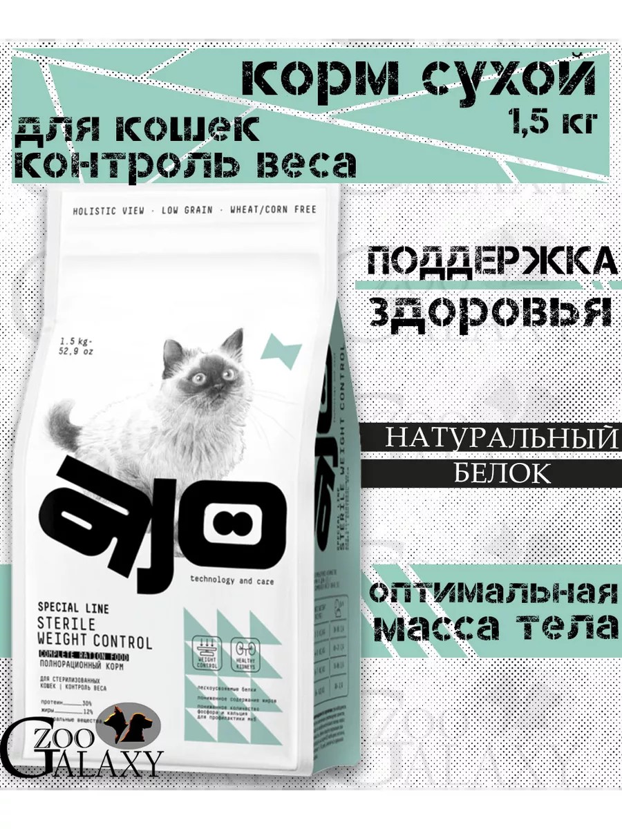 AJO Сухой корм контроль веса для стерилизованных кошек 1,5 кг