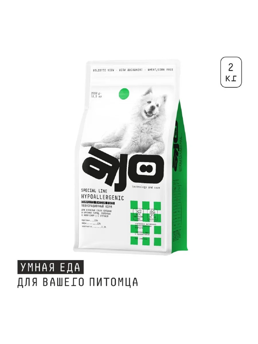 AJO Для собак средних и крупных пород при аллергии с гречкой 2кг
