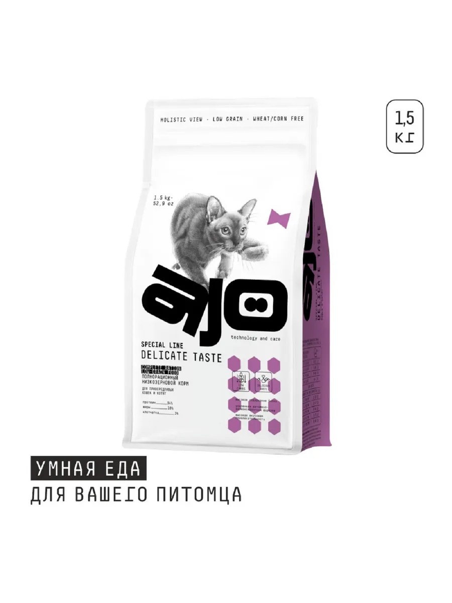 AJO Корм низкозерновой для привередливых кошек и котят 1,5кг