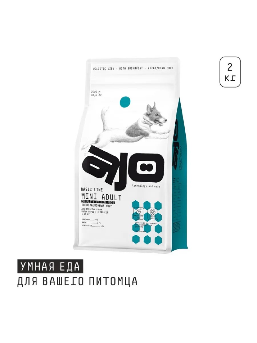 AJO Mini Adult сухой для собак малых пород с гречкой 2кг