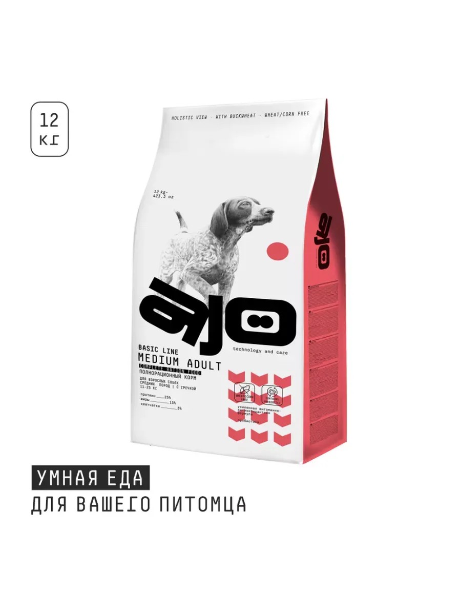 Здоровая кожа, красивая шерсть, а также крепкий иммунитет за счет оптимального сочетания витаминов, минералов и питательных веществ, удовлетворяющих потребностям взрослых собак средних пород.