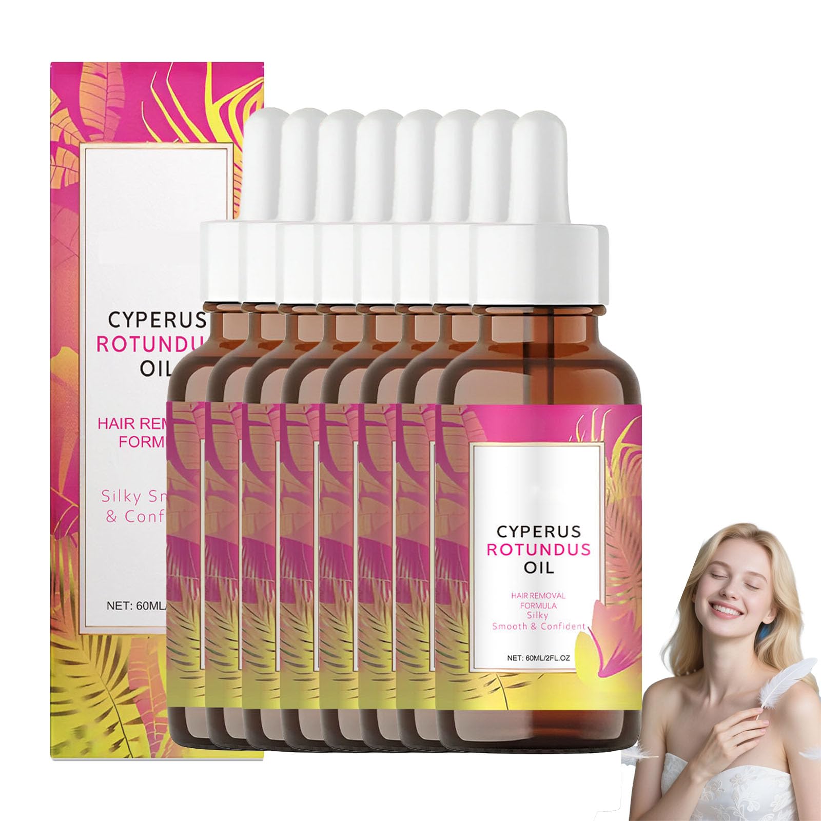 Gentle, organic, plant-based hair removal oil Soothing hair removal oil for sensitive facial and body skin Light and non-greasy for smooth skin on arms, legs, and bikini area Daily care and hair removal Product Name: Cyperus Rotundus Oil Volume: 60 ml Shelf Life: 3 years Package Contents: 1 2 3 5 8 pieces Cyperus Rotundus Oil Warning: 1. Please allow 1-2 cm error due to manual measurement. 2. The actual color of the item may vary slightly from the image due to differences in monitor settings and lighting. Thank you for your understanding. Customer Service: If you have any questions or concerns while purchg or using our products, please contact us immediately. We are available 24 7. SAFETY WARNING 1 xApplication and Results: For optimal results, apply this hair care oil daily to areas such as underarms, arms, legs, and the bikini line. Gently massage into cleansed skin on hair removal days. Regular use supports your hair care routine and ensures silky-smooth, nourished skin. Skin Feel and Texture: The light, non-greasy oil absorbs quickly and leaves no sticky residue. It moisturizes and nourishes the skin, making it ideal for sensitive facial and bikini areas. Active Ingredients and Effect: Enriched with jojoba oil, it nourishes the skin with Cyperus Rotundus. This synergy promotes smoother skin over time with regular use. Soothing and Regenerating: The oil provides soothing care to the skin after shaving, waxing, or epilating. Our formula helps relieve discomfort and redness and minimize the formation of bumps ("strawberry skin"), for smoother, more comfortable skin. Natural formula and key benefits: This natural hair removal oil contains pure Cyperus Rotundus extract and tea tree oil. It regulates hair growth and soothes the skin after hair removal for smoother skin.Huile naturelle Cyperus Rotundus pour épilation et réduction de la croissance des poils. Formule végétale pour bras, aisselles, corps et maillot. Hydrate et apaise la peau. (8PCS) 8 pièces.DESCRIPTION DU PRODUIT DESCRIPTION DU PRODUIT Huile dépilatoire bio douce à base de plantes Huile dépilatoire apaisante pour les peaux sensibles du visage et du corps Légère et non grasse pour une peau lisse des bras, des jambes et du bikini Soin quotidien et épilation Nom du produit : huile Cyperus Rotundus Contenance : 60 ml. Durée de vie : 3 ans. Contenu de l'emballage : 1 2 3 5 8 pièces Cyperus Rotundus huile Avertissement : 1. Les mesures étant prises à la main, les tailles indiquées peuvent varier de 1 à 2 cm. 2. La couleur de l'article peut varier de celle de la photo, en fonction des paramètres d'affichage et de luminosité de votre ordinateur. Merci de votre compréhension. Service client : Si vous avez des questions ou des problèmes lors de l'achat ou de l'application de nos produits, veuillez nous contacter immédiatement. Nous sommes là pour vous pendant 24 heures. AVERTISSEMENT DE SÉCURITÉ 1 xApplication et résultats : pour des résultats optimaux, appliquez cette huile de soin capillaire quotidiennement sur des zones telles que les aisselles, les bras, les jambes et la zone du maillot. Massez doucement sur la peau nettoyée pendant les jours d'épilation et en outre, Son utilisation régulière soutient votre routine de soins capillaires et assure une peau soyeuse et soignée. Sensation et texture sur la peau : l'huile légère et non grasse pénètre rapidement et ne laisse pas de film collant. Elle hydrate et nourrit la peau, ce qui la rend idéale pour les peaux sensibles du visage et le maillot. Principes actifs et effet : enrichi en huile de jojoba, il nourrit la peau avec Cyperus Rotundus Cette synergie favorise une peau plus lisse avec le temps avec une utilisation régulière. Apaisant et régénérant : la cire procure un soin apaisant à la peau après l'épilation par rasage, épilation ou épilation. Notre formule aide à soulager l'inconfort et les rougeurs et à minimiser la formation de boutons (« peau de fraise »), pour une peau plus lisse et plus confortable. Formule naturelle et avantages principaux : cette huile d'épilation naturelle contient de l'extrait pur de Cyperus Rotundus et de l'huile d'arbre à thé. Il régule la croissance des poils et apaise la peau après l'épilation pour une peau plus lisse.