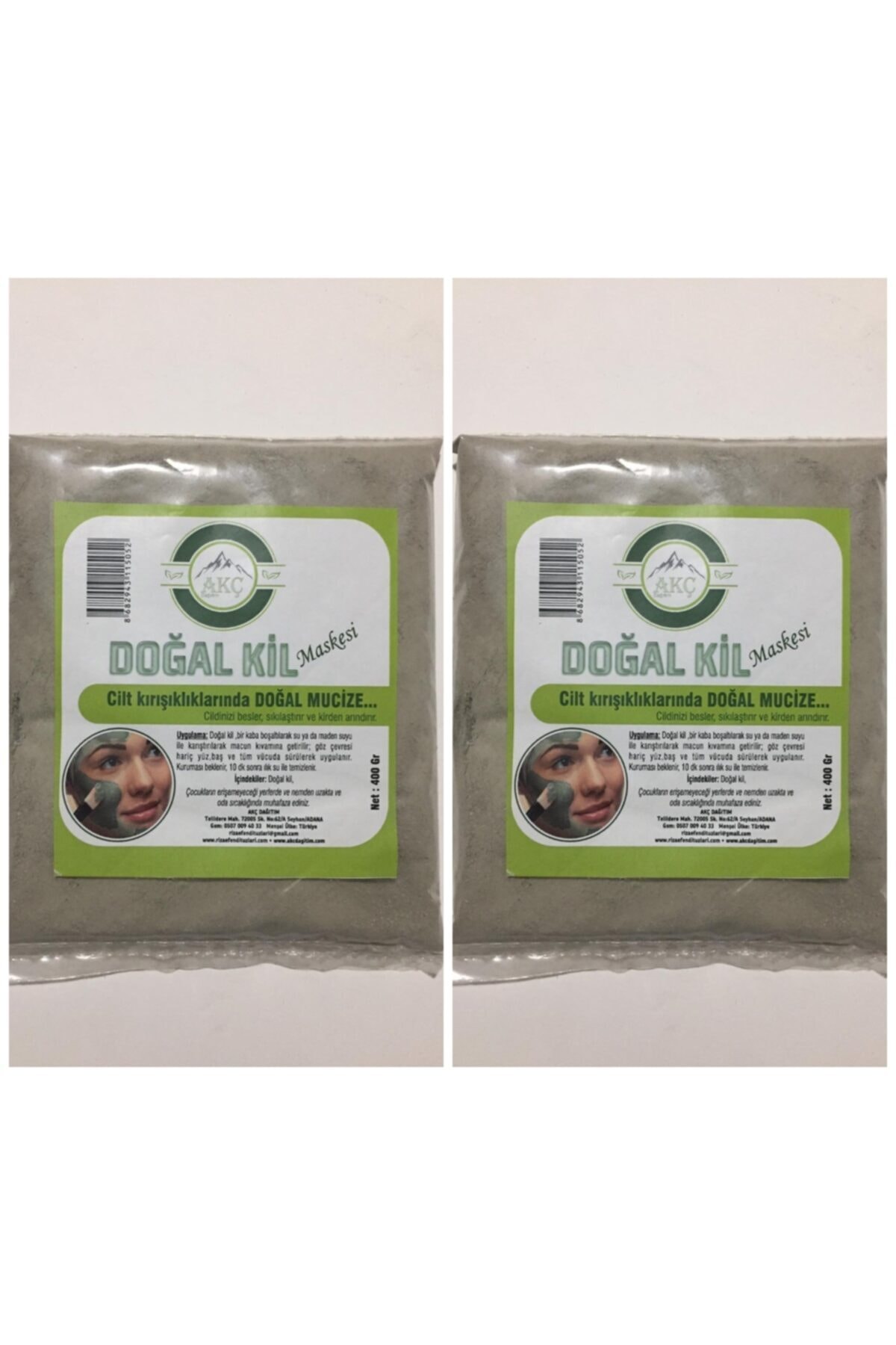 AK Distribution Green Clay Natural Pure Purifying Detox Face Mask Powder 400gr 2 Pieces