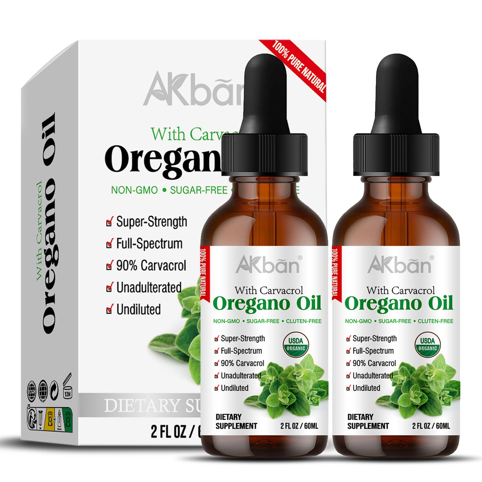 AKBAN Organic Oil of Oregano Drops | with Black Seed Oil Carvacrol & Thymoquinone | Plant Based USDA Oregano Liquid Non-GMO | 2 Fl Oz + 2 Fl Oz