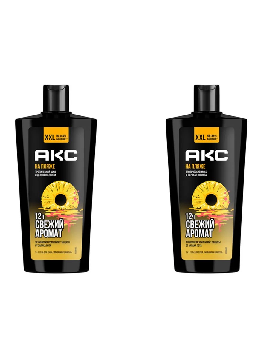 Акс. 3в1 Парфюмированный мужской шампунь, гель для душа, умывания "На пляже", 2 штуки в упаковке по 610мл. Встречай крутую новинку от Акс - средство для личной гигиены "на пляже" с топовым ароматом. Продукт 3в1 одинаково хорош как шампунь для волос, средство для умывания лица и гель для душа.