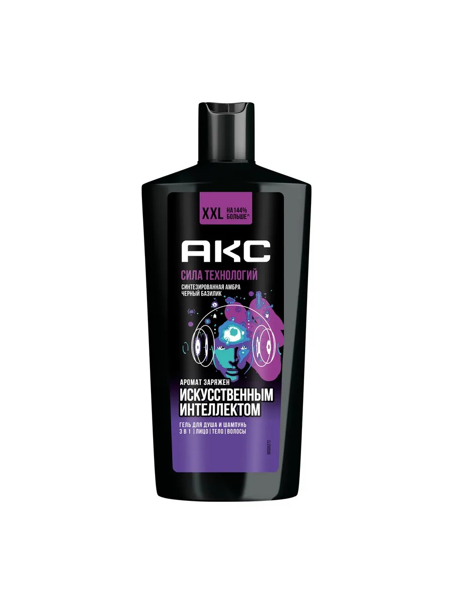 Акс шампунь мужской 3в1 Сила технологий имеет классный аромат, заряженный искусственным интеллектом. Запах средства представляет собой коктейль из пряных, древесных и сладких нот с неожиданно дерзким мужским характером. Здесь солируют черный базилик, амбра и ананас, смягченные нотками пралине и сандала, каштана и ванили. Если игра на контрастах тебе по вкусу, то этот шампунь и гель для душа мужской заслуживает твоего внимания!