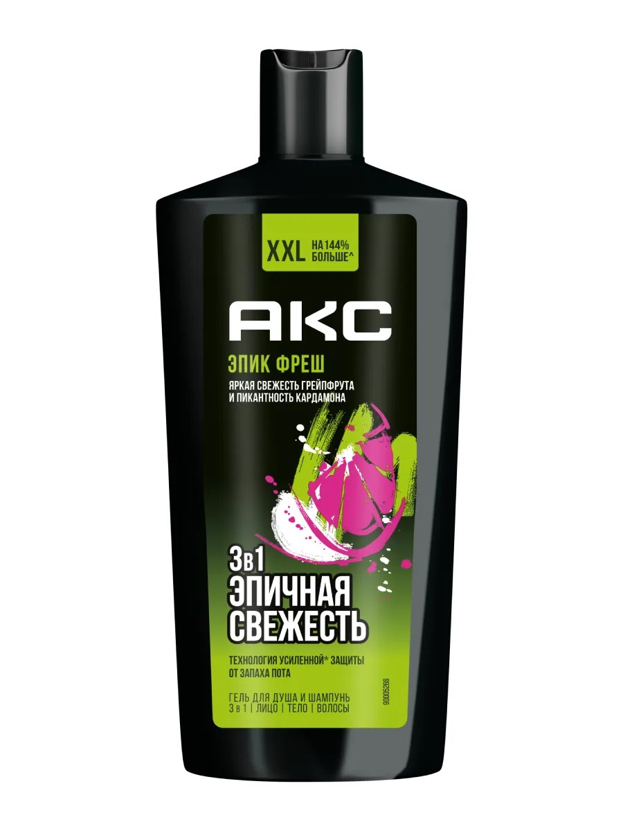С крутой новинкой от AXE – гелем для душа и шампунем 3 в 1 Epic Fresh. Он одинаково хорош, как шампунь, средство для умывания и гель для душа.