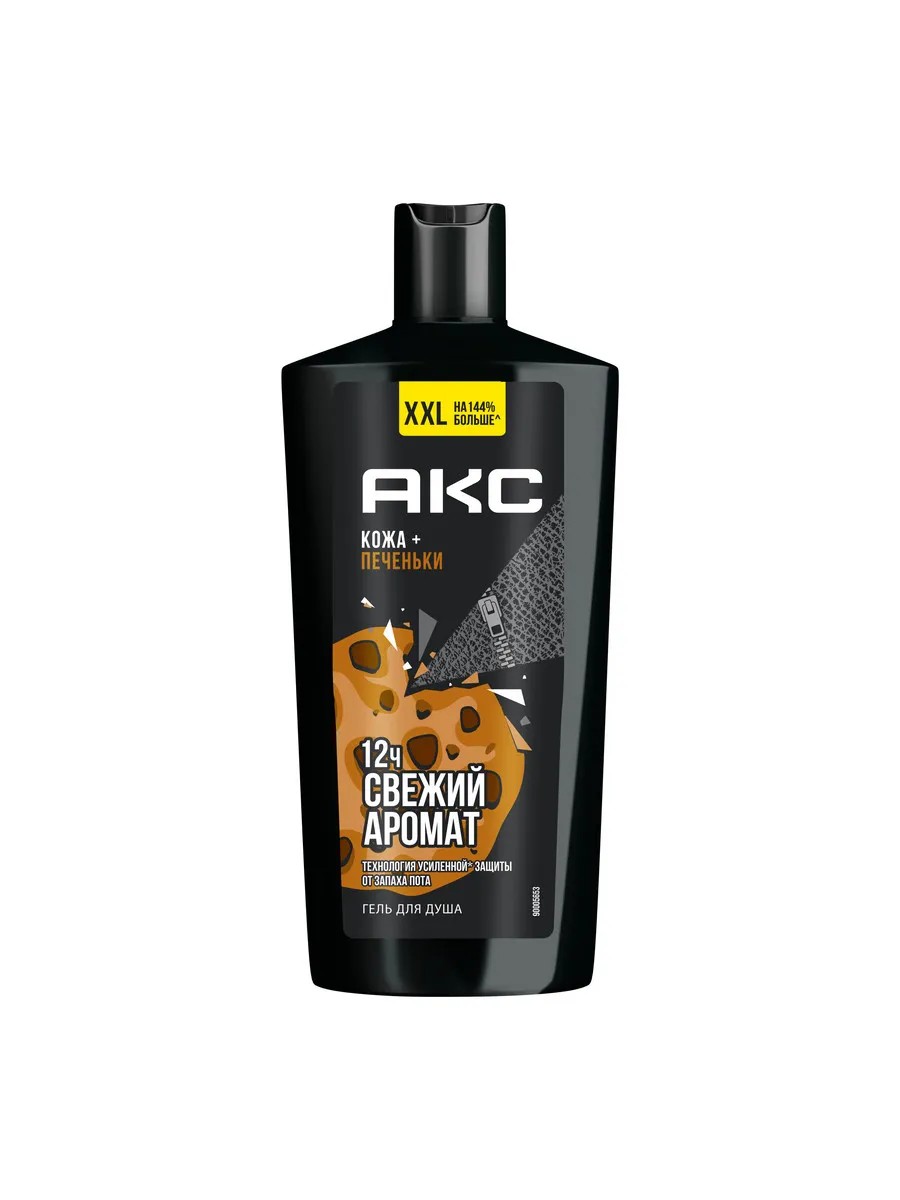 Мужской парфюмированный гель для душа Акс Кожа и печеньки - это уходовое средство с топовым* ароматом, которое обеспечивает защиту от запаха пота в течение 12 часов**.