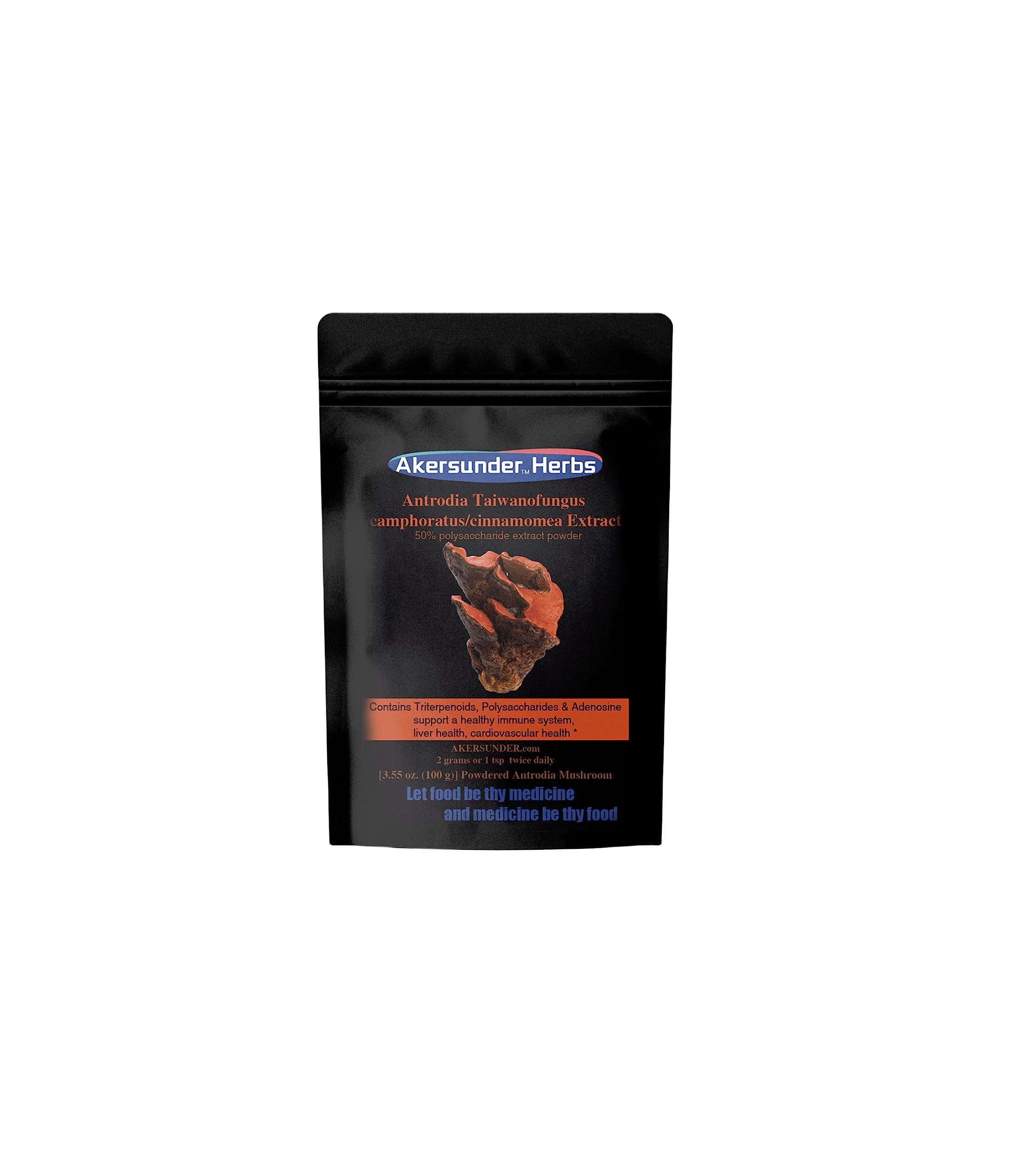 also known as Antrodia camphorata in Latin, is a new species that was only published in the biochemical community in 1990. Its growth area is in the mountain forest of the mountainous area of Taiwan with an altitude of 450-2000 meters. It only grows in the inner wall of decayed heartwood of the trunk of Cinnamomum kanehirae, which is unique to Taiwan for more than a century. The wet surface of Cinnamomum kanehirae wood is not easy to collect. In addition, the wild Cinnamomum kanehirae has been listed as one of the national treasures by the government in recent years, so the social events of stealing Taiwanofungus camphoratus are still heard from time to time. Only grows on the unique camphor tree in Taiwan. Wild Taiwanofungus camphoratus is a unique conservation tree species in Taiwan Island. There are more than 100 Nymphaea camphora trees in the Xueshankeng Nymphaea Reserve at the upstream of Da'an River. Taiwanofungus camphoratus is found on the camphor tree and can grow for hundreds of years. The host of wild camphor tree, the Taiwan camphor tree, which relies on for survival, grows only in mountainous areas of Taiwan at an altitude of 450 to 2000 meters worldwide. The camphor tree only grows in the hollow area of the decaying inner wall of the camphor tree, or on the dark and damp surface of the fallen camphor tree. The number is very rare and the growth rate is very slow, with an annual growth thickness of only a few centimeters. It has been legislated as a national treasure level protected tree species in Taiwan. The composition of the A. camphorata Polysaccharides Terpenoids SOD:Superoxide Dismutase, RNA, Adenine, Uracil Suggest Dosage 3-5 Grams, 2-3 times dailyOur task is to continuously explore and develop concentrated products based on these natural foods, making it easier for people to understand cultures, natural products, and their origins around the world. And learn and use them to enrich our spiritual civilization while strengthening our physique. Let's be more natural and healthy!. they are all local characteristic natural products. They constantly evolve and adapt to various climatic environments in various natural environments, absorbing and concentrating the essence of heaven and earth. Akersunder Herbs is a brand founded in the United States, committed to optimizing and integrating the most RAW WILD ORGANIC natural foods from around the world, providing the most authentic and unique local source products, whether it is Cistanche in the Northwest Desert of China, Chaga Mushroom in Siberia, wild ginseng in Changbai Mountain, wild mountain ant in Guangxi, Yunnan pine pollen, or Maral Root on Mongolian grasslands. Improving quality of life enhancing immunity: Akersunder Herbs Antrodia Extract Triterpenoids, Polysaccharides . support a healthy immune system, liver health, cardiovascular health. Concentrated water-soluble convenient and nutritious: Akersunder Herbs Antrodia Extract is a pure water extract that can easily dissolve in many daily beverages, such as coffee, juice, milk, cooking, or warm water. The extraction standard is 50 polysaccharide. Safety reliability guarantee: The Akersunder Herbs Antrodia Extract production factory is a large listed enterprise that has passed c-GMP certification and ISO22000:2008 food safety system certification. The products have been tested by an ISO 17025 accredited laboratory. (Please contact for certificates). RAW WILD ORGANIC: Akersunder Herbs Antrodia Mushroom is sourced from Taiwan and collected from local farmers, where it is well known to produce high-quality Mushrooms.