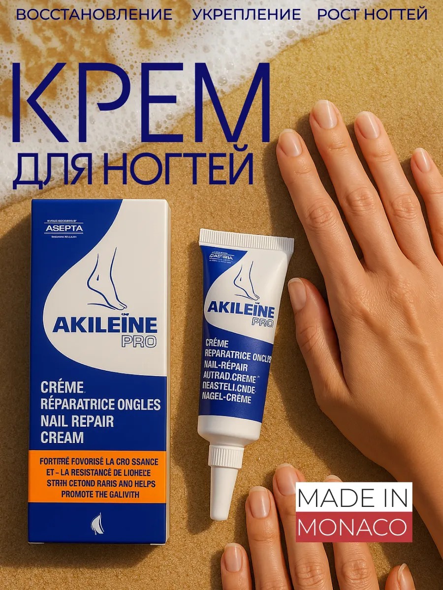 Крем для восстановления ногтевой пластины укрепитель для ногтей PRO Nail Repair Cream Akileine Акилейн ускоряет рост ногтей, уплотняет и укрепляет ногти и защищает их от грибковых заболеваний. Восстанавливающее средство для ухода за ногтями и кутикулой предназначен для питания, увлажнения и защиты. Продукт произведен в Монако, обладает легким приятным запахом. Подходит как женщинам, так и мужчинам. Благодаря натуральному составу он безопасен как укрепляющий лак для ногтей даже для чувствительной кожи.