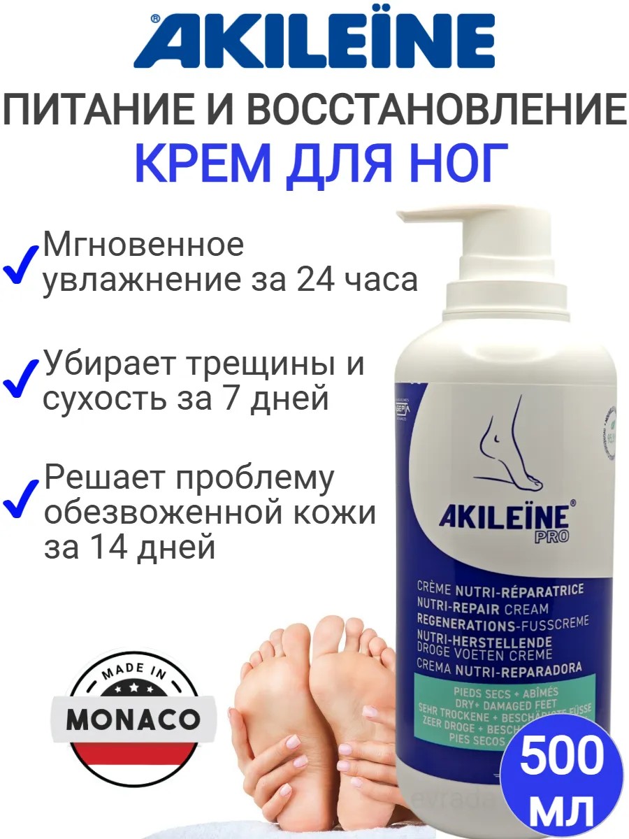 Профессиональный увлажняющий крем от сухости ног и стоп Акилайн Nutri-Repair Cream With Plants, используют для восстановления и питания загрубевшей кожи, лечения трещин пяток и дефектов кожи стоп. Крем бережно ухаживает за ногами, смягчает огрубевшую кожу и восстанавливает её, способствуя росту синтеза коллагена. Большой объем 500 мл для профессионалов и подологов.