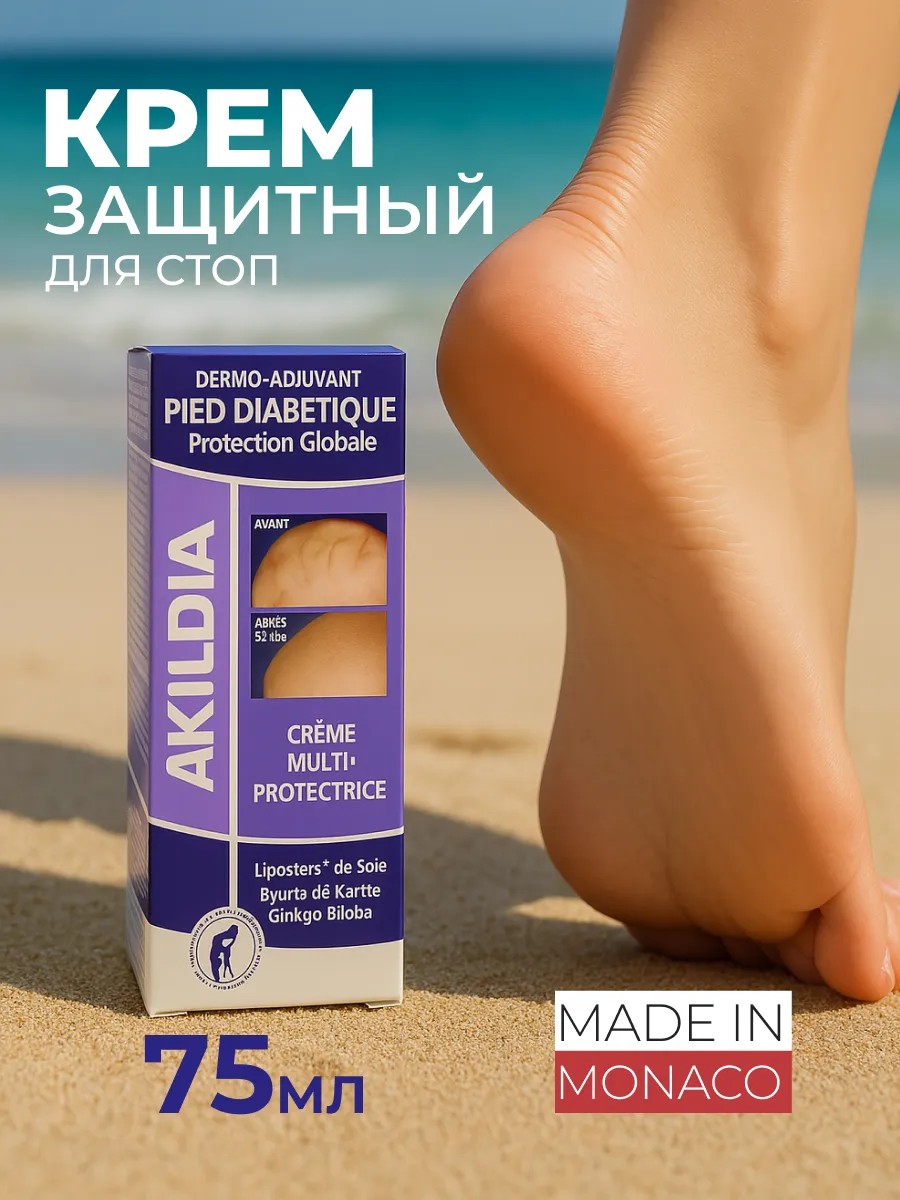 Защитный крем для стоп Акилдиа AkilDia Akileine Акилейн специально разработан для очень сухой кожи стоп с трещинами, шелушениями, мозолями, хорошо подойдет при диабетической стопе у диабетиков.
