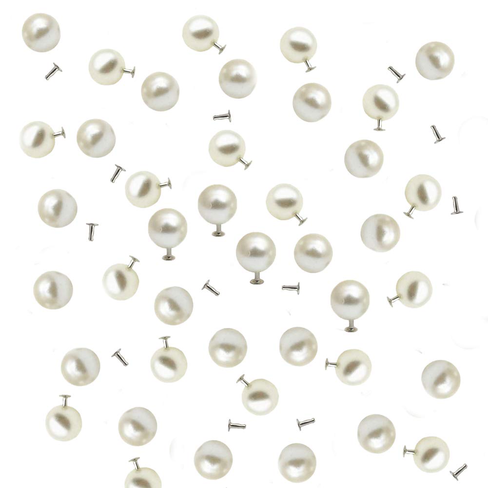 AKOAK 100 Set Pearl Rivet Half Hole Faux Pearls Rivets Studs Buttons for Hat/Shoe/Clothes/Bag/Skirt/Bridal Veil DIY Accessories (6.0mm)