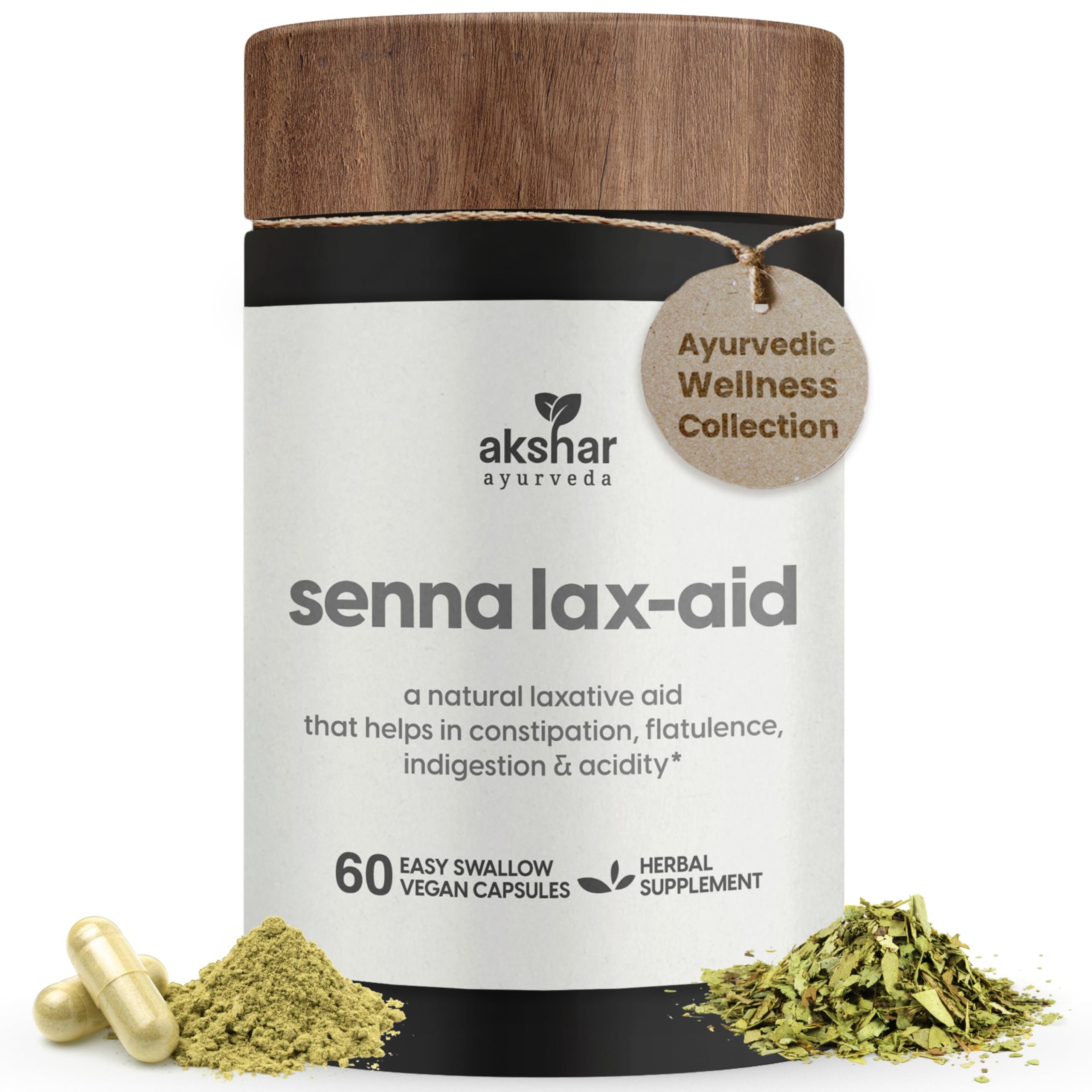 AKSHAR Ayurveda - Senna Lax Aid Herbal Constipation Relief & Laxative - Natural Bloating, Gas, Indigestion & Constipation Supplement - Vegan Cruelty Free (60 Count)