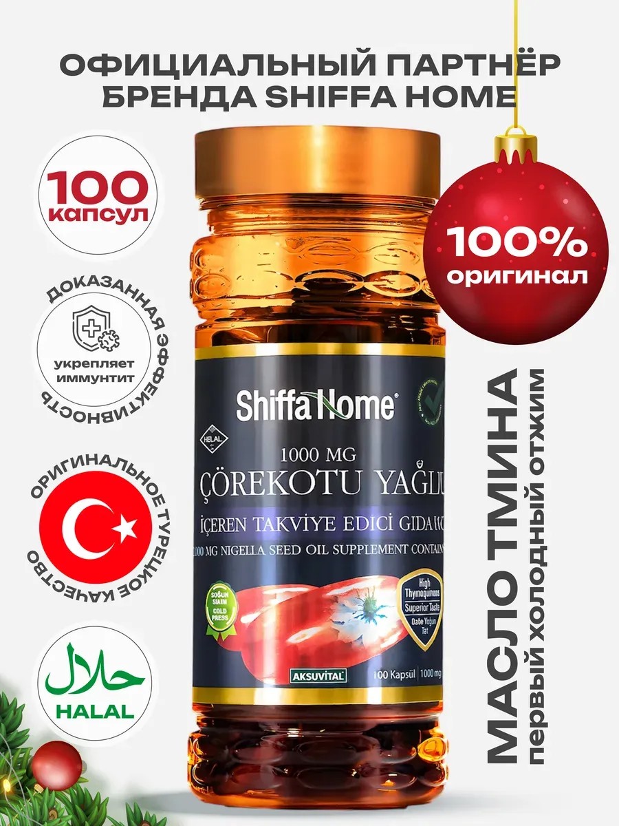 Масло черного тмина в капсулах от турецкого бренда Shiffa Home — это органический продукт, который помогает укрепить здоровье благодаря высокому содержанию витаминов и минералов. При производстве масла семена не подвергаются нагреву, что сохраняет их полезные свойства. Этот БАД рекомендован для повышения иммунитета, нормализации артериального давления, снижения уровня холестерина и улучшения потенции. Он также эффективен при дерматологических заболеваниях, помогает очищать печень и почки, а также способствует восстановлению менструального цикла.