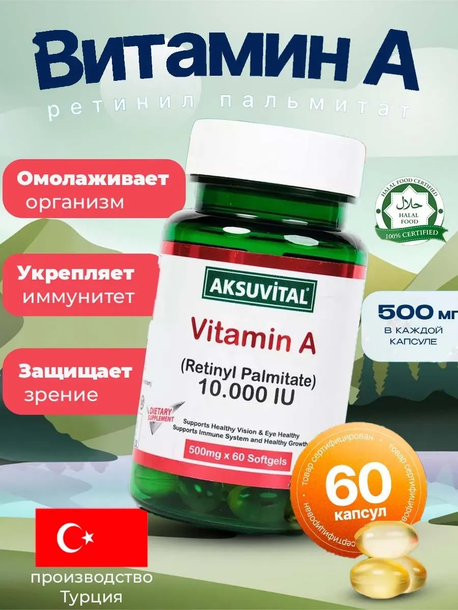 | Комплектация | Витамин А Aksuvital 60 капсул - 1 уп. |
