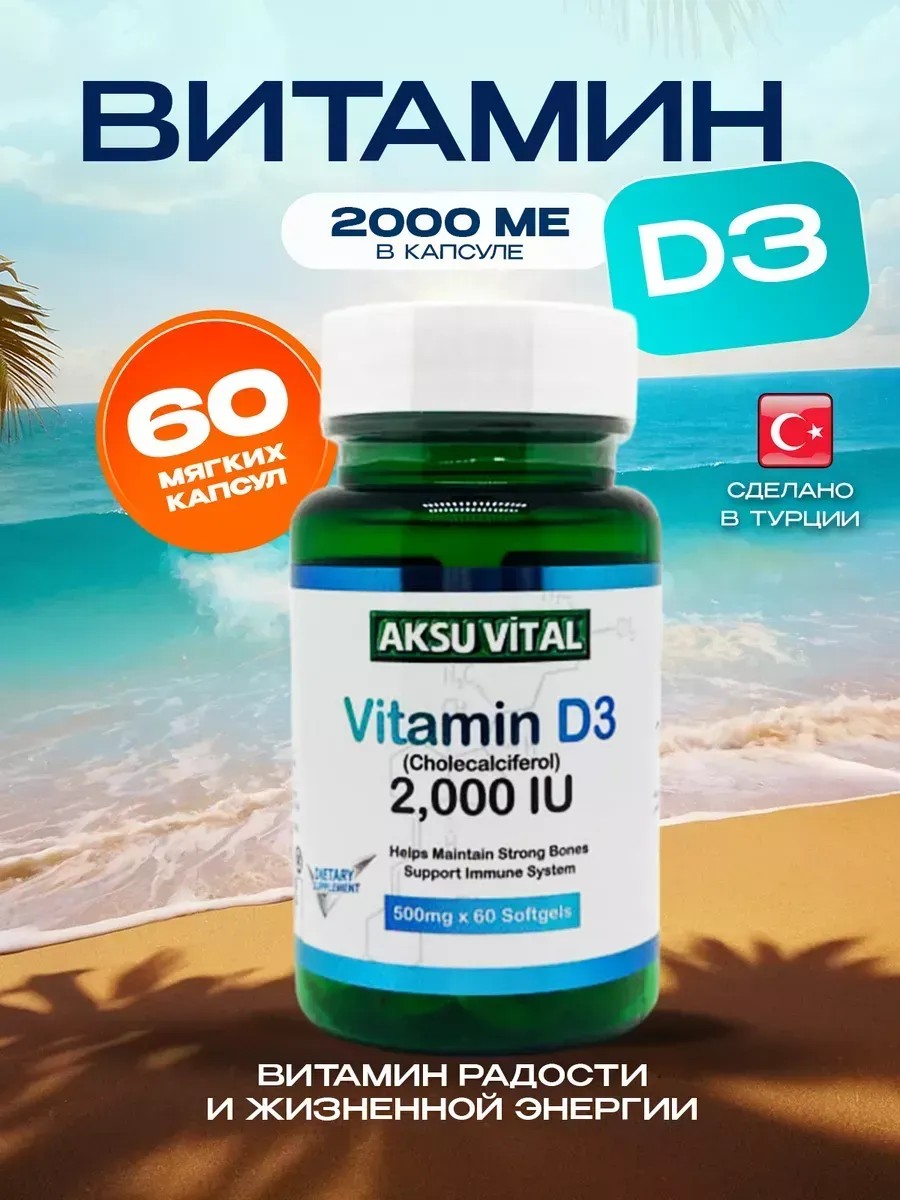 Витамин D3 2000 ME — это незаменимый элемент, который оказывает комплексное положительное воздействие на организм. Произведенный с соблюдением высочайших стандартов качества, наш витамин D3 2000 ME обеспечивает организм необходимым уровнем этого важного витамина, способствуя укреплению костной системы, повышению иммунитета и улучшению общего самочувствия. Витамин д от турецкого производителя AKSU VITAL уже много лет отличается своим качеством и эффективностью.