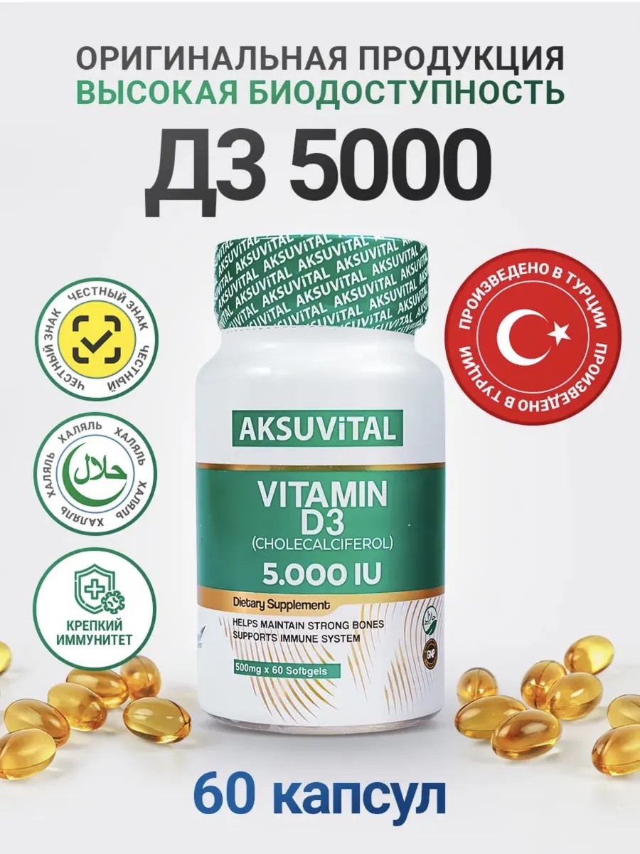 Tired of chronic fatigue and nervousness? Take vitamin D3! Just one capsule of D3 5000 IU has the same effect as sunlight and foods rich in vitamin D. Cholecalciferol is used as a dietary supplement to support the immune system, muscles, and bones, normalize the nervous system (eliminates panic attacks, anxiety, tearfulness, irritability, and insomnia), and boost metabolism. As a dietary supplement, it helps you lose extra pounds smoothly and without stress, as it reduces cravings for sweets and improves endocrine and hormonal function, which, when disrupted, can lead to excess weight gain in women. Helps the body more quickly absorb calcium, collagen, omega-3, iron, zinc, and vitamins A, B, C, and E. Vitamin D3 is recommended for the elderly, pregnant women, vegetarians, athletes, and those with arthritis, poor posture, diabetes, early menopause, and skin conditions. Complex D3 capsules for nails, skin, mineral, multivitamins, sport health 2000 10000.