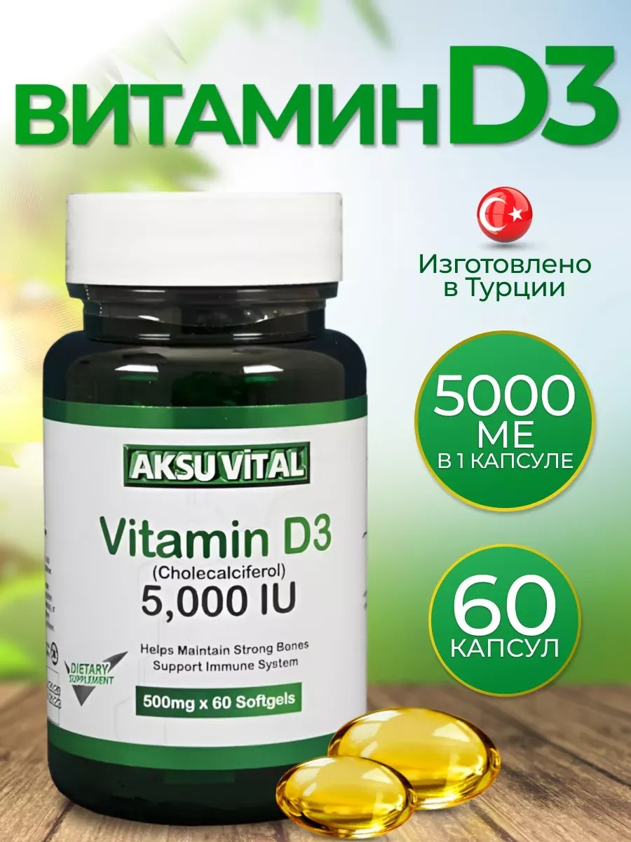 aksu vital Витамин Д3 в капсулах (5000 me)