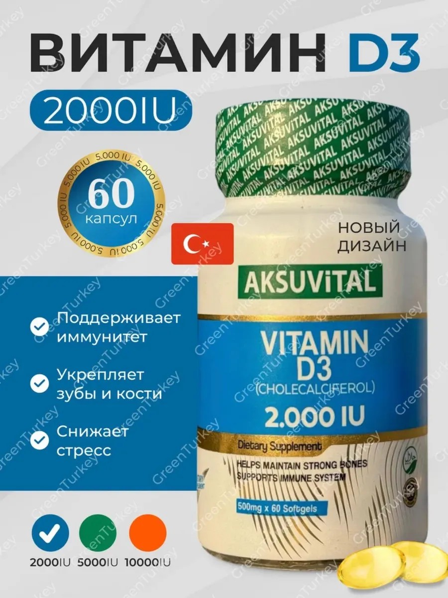 AksuVital Витамин Д3 2000 IU, D3 для иммунитета и энергии Турция