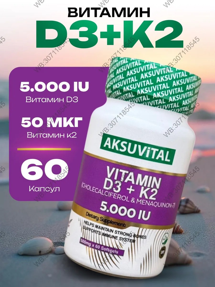 AKSU VITAL vitamin D3+K2 5.000 IU 60 капсул