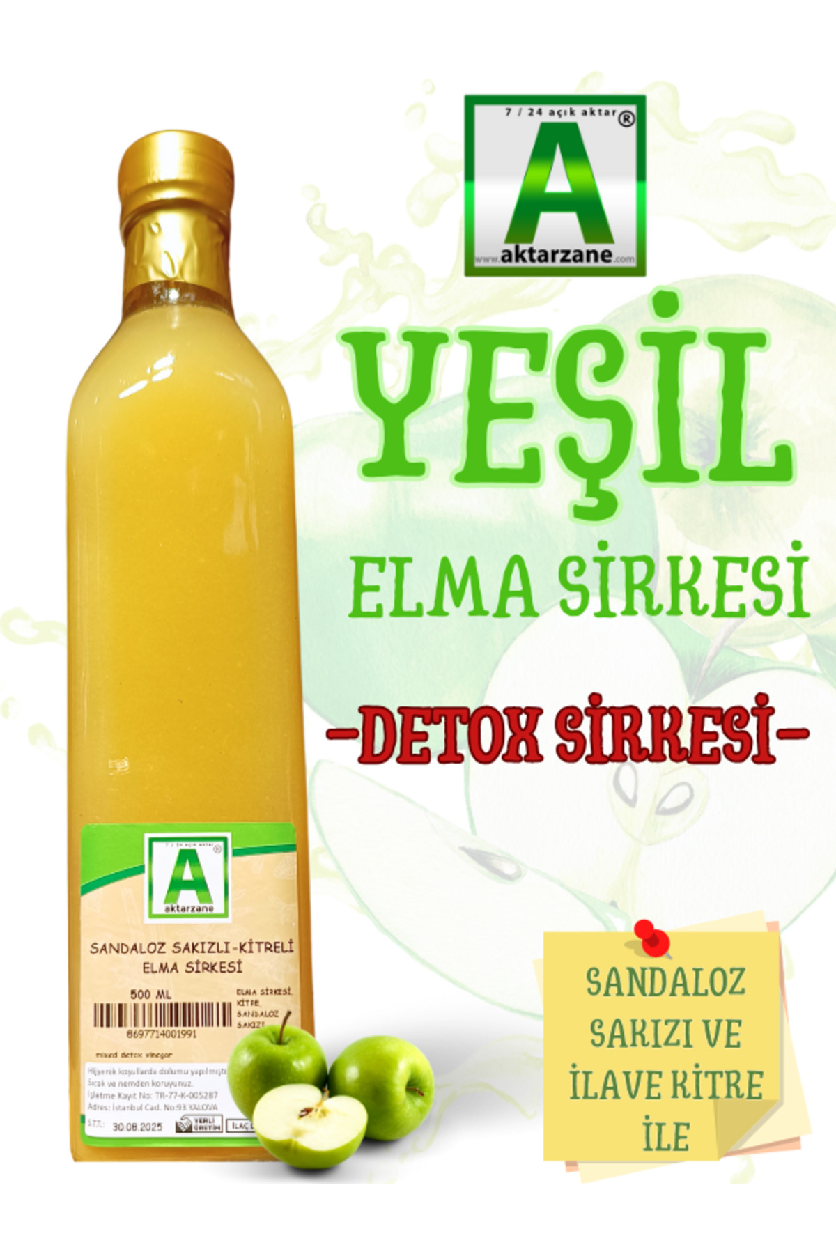 Aktarzane Green Apple Cider Vinegar Natural Detox Effective Sandalwood Tragacanth Added Green Apple Cider Vinegar 500ml