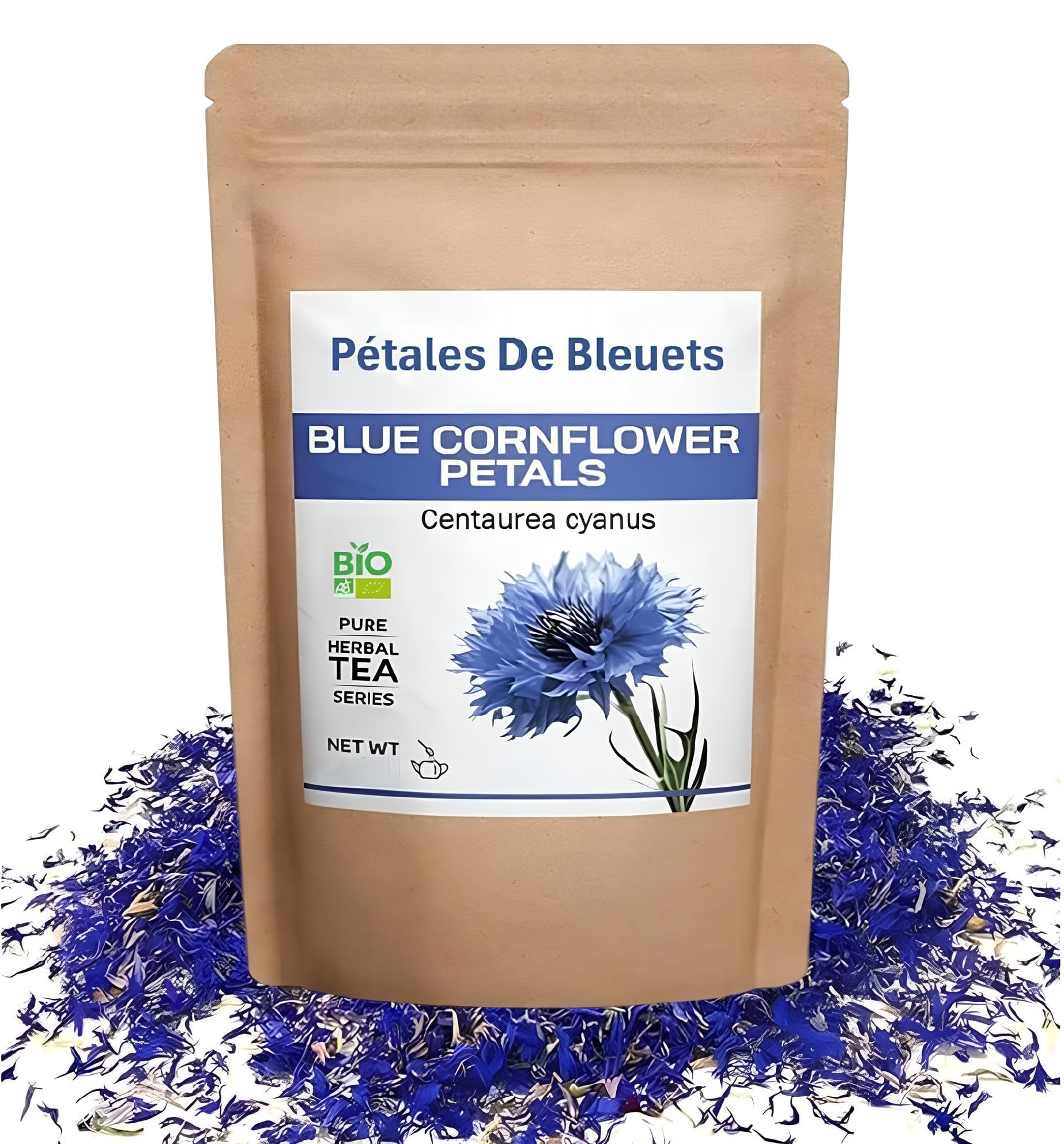 Product Title: Organic Cornflower Petals 50g – Centaurea cyanus Herbal Tea – Edible and Decorative Flowers General Description: Discover our cornflower (Centaurea cyanus) petals, 100 natural, grown and hand-harvested to guarantee exceptional quality. Their vibrant blue color and natural properties make them a choice ingredient for your drinks, desserts, and culinary creations. Perfect for homemade lattes, tea blends, or even bath bombs, these petals bring a unique and natural touch to your moments of relaxation. Bullet Points: Quality Commitment: Vegan, non-GMO, no artificial colors, no fat. Perfect for healthy and environmentally conscious consumption. Suggested Uses: Prepare unique and natural tea blends. Decorate your desserts or dishes for an impressive visual effect. Add them to bath bombs for a homemade spa experience. Key Features: Ingredient: Dried cornflower petals (Centaurea cyanus). Net weight: 20 g. Certification: Organic, non-GMO. Origin: Hand-picked and sorted flowers. INGREDIENTS cornflower petals INSTRUCTIONS Prepare a cup of tea by adding 1 teaspoon of cornflower petals to a cup. Pour in hot water (approximately 90 C 194 F) and let it steep for 3 to 5 minutes. You can adjust the steeping time to your liking. Add honey or lemon if desired. See more