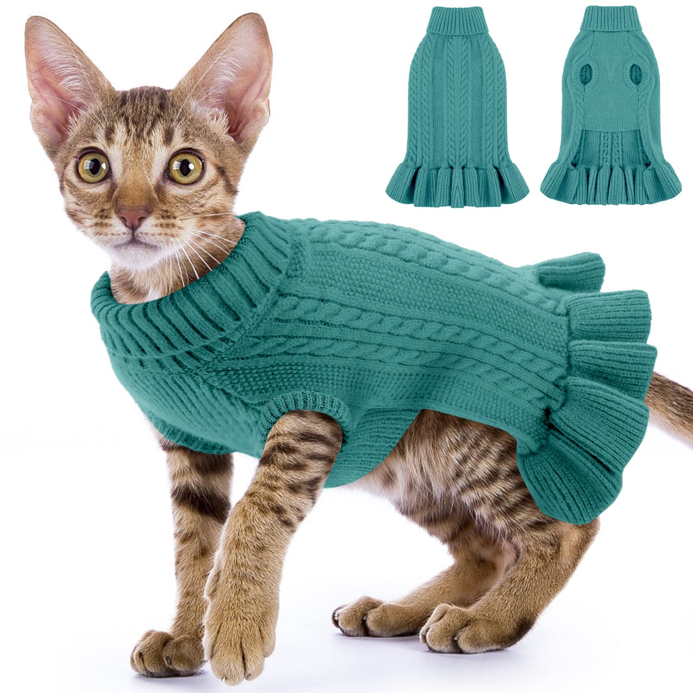 6 sizes and 6 colors: The dog sweater for cold weather has 6 sizes and 6 colors.Suitable for most cats and small medium -sized dogs such as Chihuahua, Bulldoggen, Dachshund and Beagles.Please measure the size before you place the order.If you are not satisfied with our pet sweaters or have problems with the size, please contact us.Perfect gift: as a perfect pet gift for your little sweetness.This winter dog sweater can be used for many occasions, suitable for activities on the subject of Christmas, Thanksgiving, Halloween and ideal for wearing daily, weekend parties, meetings, photo shoots.Easy to take off: sleeveless and turtleneck design with high elasticity and smoothness, simply to take off.With this stretchy pet clothing you can put on your cat or dog quickly and easily.Modic clothes design: sweet, rushed pet sweater dress design is ideal for girls female cats and dogs.It is a perfect pet sweater for cold weather to dress up your dog like a beautiful princess, to make your pet look more elegant and your pet will attract the love and attention of more people.Ultraich and warm: made from 42 acrylic, 30 PBT and 28 nylon.High -quality material makes the cat sweater super soft and comfortable to wear and stores your pet body heat.Keep your cat warm in the cold winter snow.6 GRÖSSEN UND 6 FARBEN: Die Hundepullover für kaltes Wetter hat 6 Größen und 6 Farben. Geeignet für die meisten Katzen und kleine mittelgroße Hunde, wie Chihuahua, Bulldoggen, Dackel und Beagles. Bitte messen Sie die Größe, bevor Sie die Bestellung aufgeben. Wenn Sie mit unseren Haustierpullover nicht zufrieden sind oder Probleme mit der Größe haben, kontaktieren Sie uns bitte. PERFEKTES GESCHENK: Als perfektes Haustiergeschenk für Ihre kleinen Süßen. Dieser Winter Hundepullover können für viele Gelegenheiten verwendet werden, geeignet für Aktivitäten zum Thema Weihnachten, Thanksgiving, Halloween und ideal für das tägliche Tragen, Wochenendpartys, Versammlungen, Fotoshootings.Maschinenwaschbar, Handwäsche und Trockner erlaubt. EINFACH AN AUSZUZIEHEN: Ärmelloses und Rollkragen Design mit Hohe Elastizität und Geschmeidigkeit, einfach an auszuziehen. Mit dieser dehnbaren Haustierkleidung können Sie Ihre Katze oder Ihren Hund schnell und einfach anziehen. MODISCHES KLEIDERDESIGN : Süßes gerüschtes Haustierpullover Kleid Design ist ideal für Mädchen weibliche Katzen und Hunde. Es ist ein perfekter Haustierpullover für kaltes Wetter, um Ihren Hund wie eine schöne Prinzessin zu verkleiden, Ihr Haustier eleganter aussehen zu lassen und Ihr Haustier wird die Liebe und Aufmerksamkeit von mehr Menschen auf sich ziehen. ULTRAWEICH UND WARM: Hergestellt aus 42 Acryl, 30 PBT und 28 Nylon. Hochwertiges Material macht den katzen Pullover superweich und angenehm zu tragen und speichert die Körperwärme Ihres Haustieres. Halten Sie Ihre Katze im kalten Winter Schnee warm.ALAGIRLS Winter Hund Katzenpullover, Welpenkleidung Weicher Warmer Pullover für Kleine Hunde, Haustier Warme Kleid Weste für Teddy Dackel Zwergdackel Yorkie Französische Bulldogge, PeacockGreen XS XS Pfauengrün