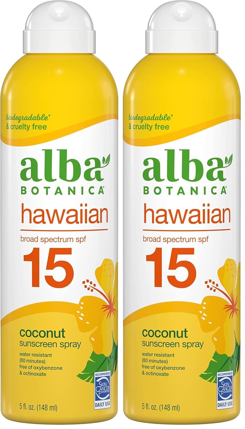 Alba-Botanica's Sunscreen Spray for Face and Body Broad Spectrum SPF 15 Sunscreen Hawaiian Coconut Water Resistant and Biodegradable 5 fl. oz. Bottle (Pack of 2)