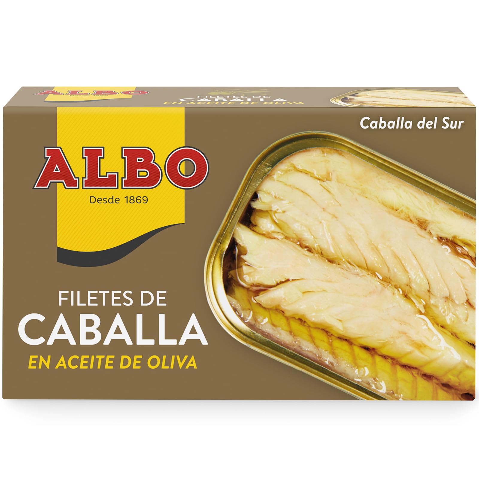Albo South Oil Mackerel Fillets Olive - 120 G Net Net weight 120 g. Drained weight 85 g. .net weight 120 g. drained weight 85 g. Albo South Oil Filets de maquereaux Olive - 120 G Net Poids net 120 g. poids égoutté 85 g. .poids net de 120 g. poids égoutté 85 g.