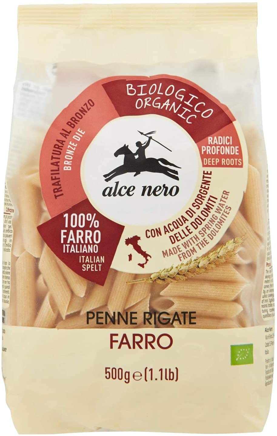 4 x 500 g « ALCE NOIRS » pâte biologique italienne de défroissé de papillon (stylos rigués) …