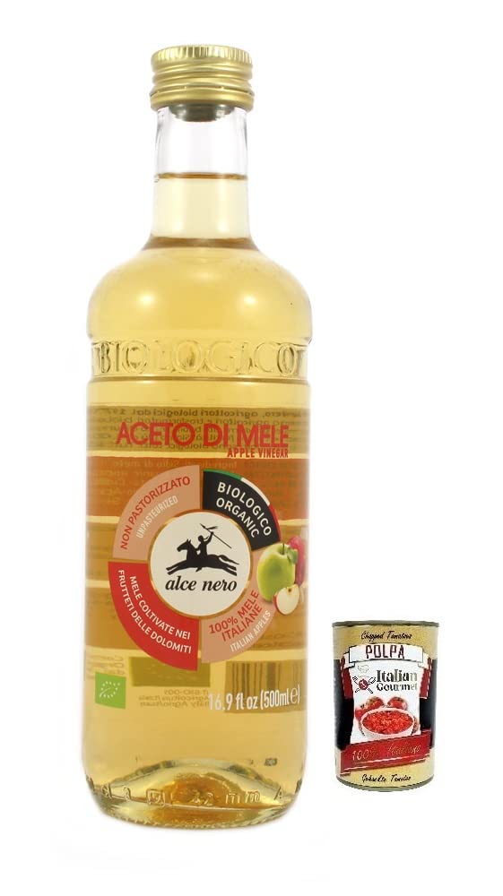 Alce Nero Aceto di Mele Biologico organic apple cider vinegar made from Italian apples 500 ml bottle + Italian gourmet Polpa di Pomodoro 400 g can