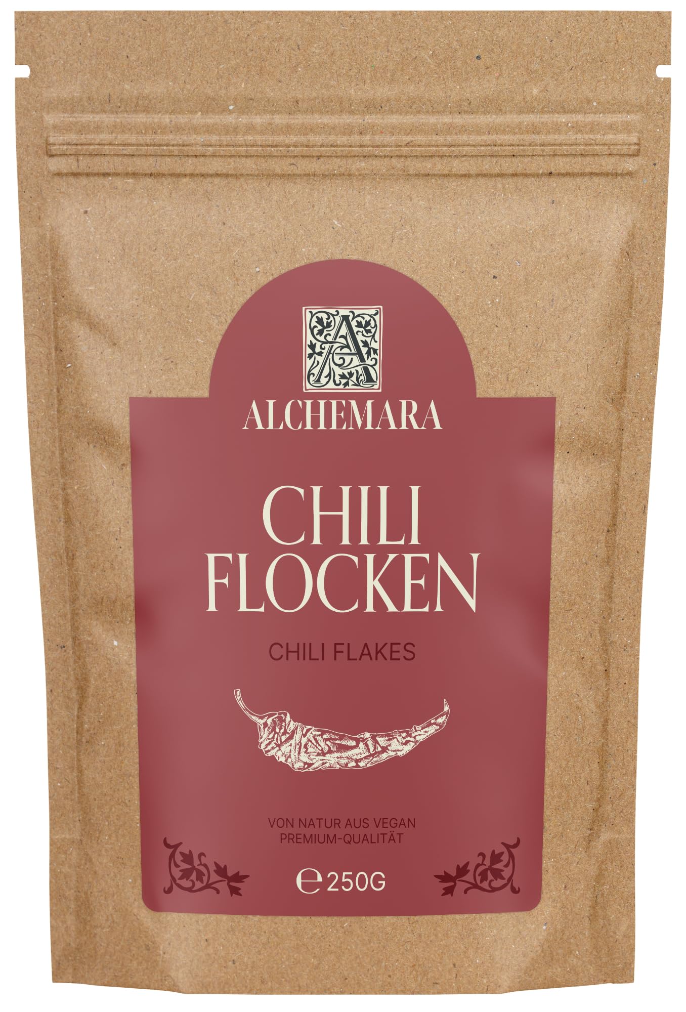Alchemara Chili Flakes are made from high-quality dried chilies, carefully ground to preserve their crispness and natural aroma. They bring a powerful, vibrant kick to every meal – perfect for sprinkling on pizzas, pasta, grilled vegetables, or meat, as well as for seasoning sauces, marinades, and salad dressings. Inside the bag, you'll find only pure chili flakes – with no unnecessary preservatives, flavorings, or additives. The resealable, light-protected packaging ensures long-lasting freshness and aroma, always on hand when you want to spice things up. At Alchemara, we believe in honest ingredients with character. Our chili flakes are vegan, vegetarian, and a timeless addition to mindful, aromatic cooking. INGREDIENTS Chili flakesChiliflocken Alchemara (250 g) - Flocons de piment - Épices séchées délicatement pour votre cuisine - Épices aromatiquesDESCRIPTION DU PRODUIT DESCRIPTION DU PRODUIT Alchemara Les flocons de piment sont fabriqués à partir de piments séchés de haute qualité et soigneusement broyés pour préserver leur netteté et leur arôme naturel. Ils apportent une netteté puissante et vivante à chaque repas - Parfait pour saupoudrer des pizzas, des pâtes, des légumes grillés ou de la viande ainsi que pour assaisonner les sauces, les marinades et les vinaigrettes. Dans le sachet, vous trouverez exclusivement des flocons de piment purs – sans conservateurs, arômes ou additifs inutiles. L'emballage refermable et protégé de la lumière assure une fraîcheur et un arôme durables, à portée de main à tout moment lorsque vous souhaitez mettre du feu à vos plats. Chez Alchemara nous croyons en des ingrédients honnêtes avec caractère. Nos flocons de piment sont végétaliens, végétariens et un atout intemporel pour une cuisine consciente et aromatique. INGRÉDIENTS flocons de piment
