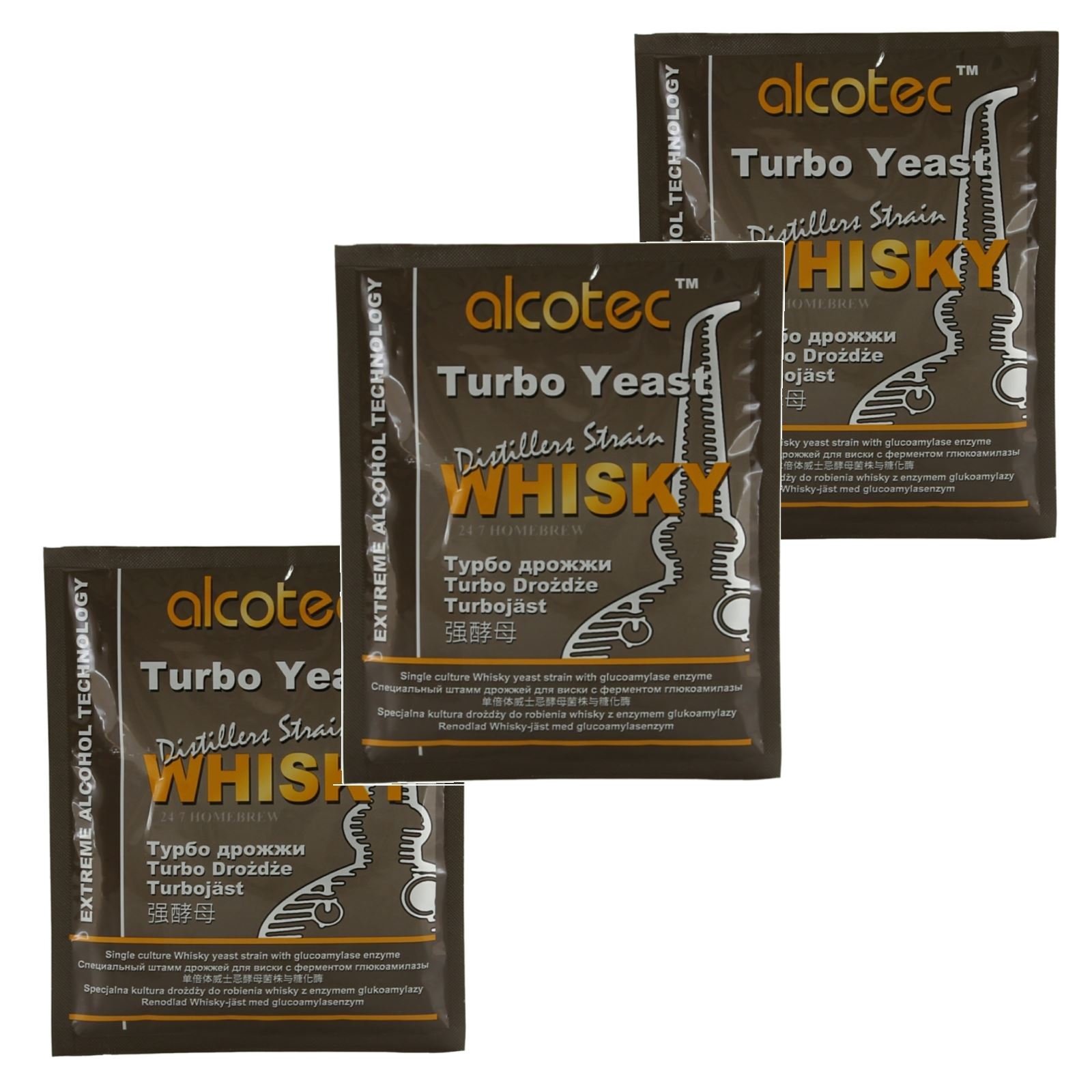 Alcotec Turbo Yeast Whiskey 73g 3 Pack Fast Fermenting Yeast for Sugar Wash with Glucoamylase Enzyme