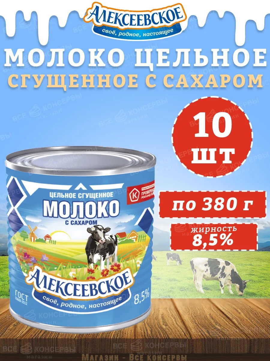 Молоко цельное сгущенное с сахаром 8,5%, Алексеевское, 380 г