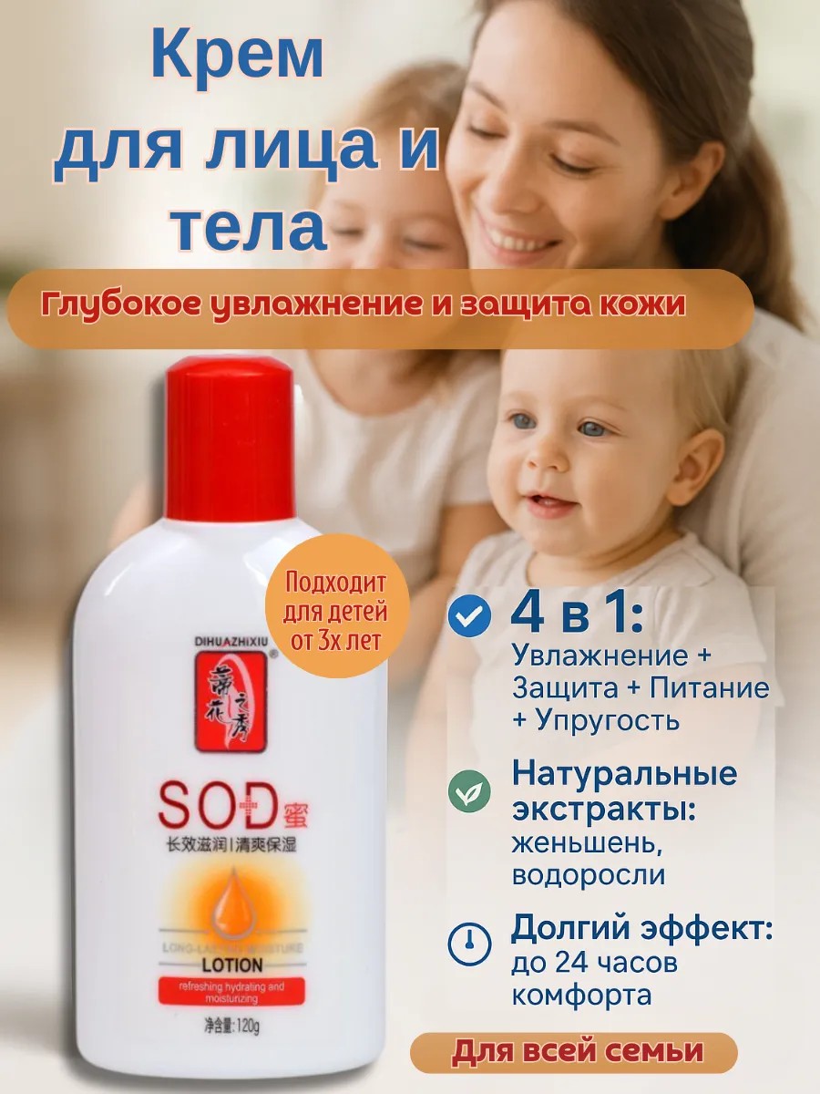 SOD Lotion Face and Body Cream for the Whole Family is a versatile daily care product designed to gently and effectively moisturize skin year-round.